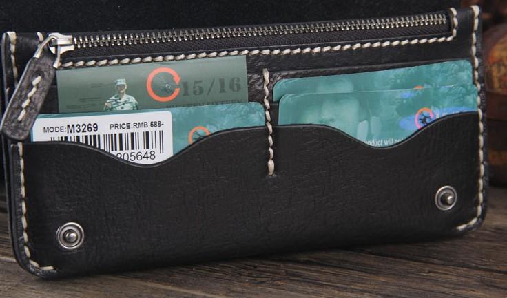 Design: Handmade Genuine Leather Mens Cool Long Leather Wallet Bifold Clutch Wallet for Men