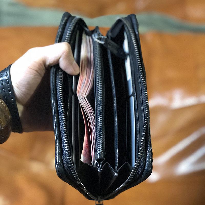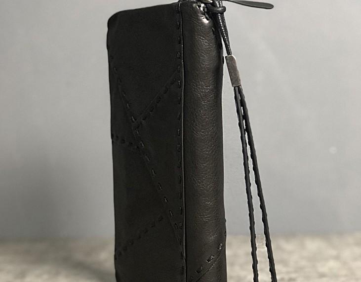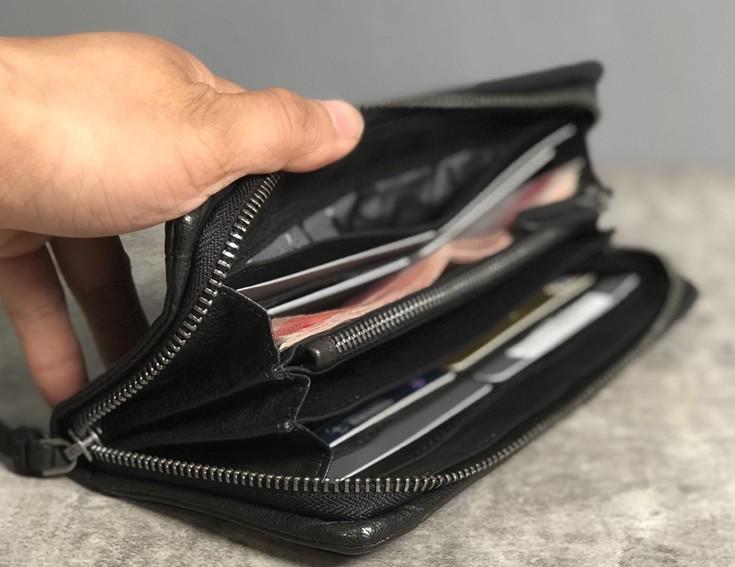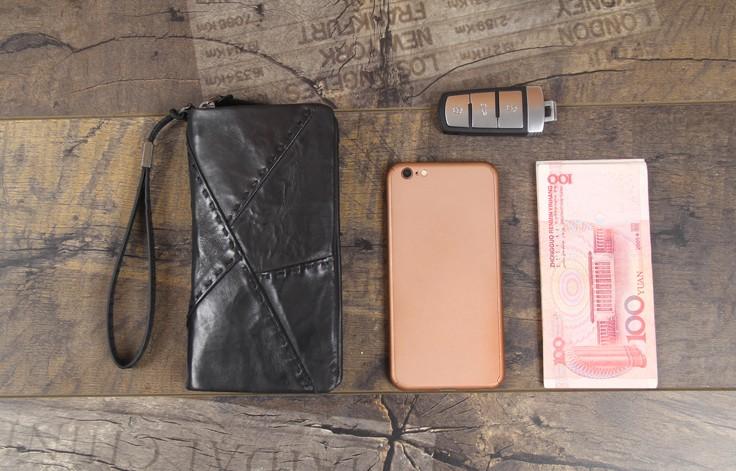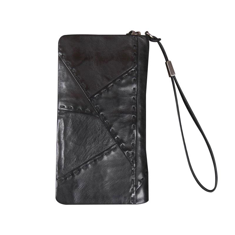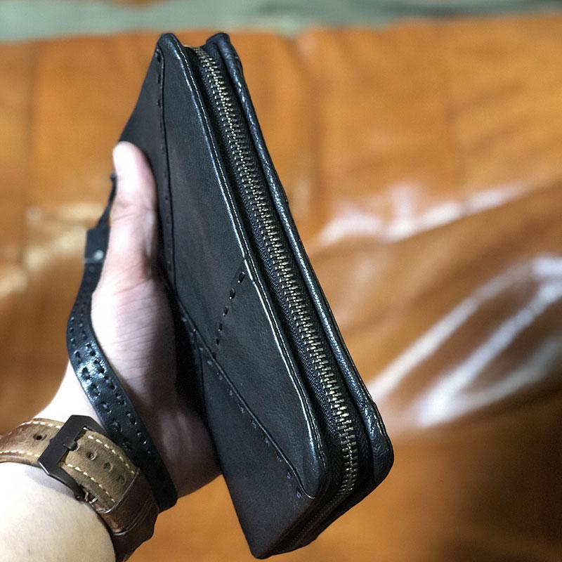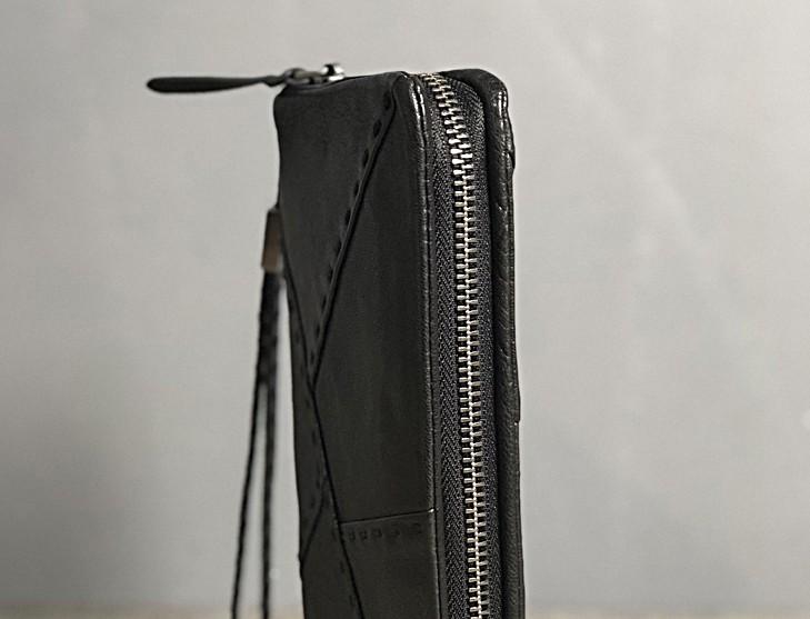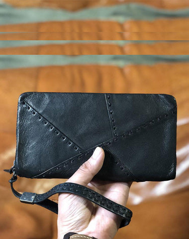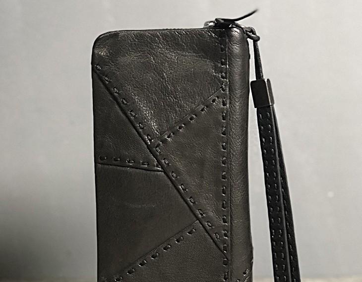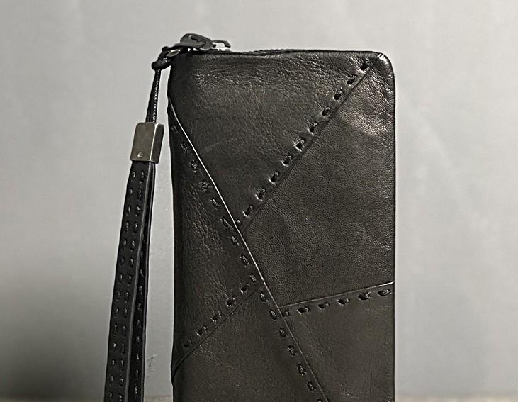 Design: Handmade Genuine Leather Mens Cool Long Leather Wallet Biker Wallet Zipper Clutch Wristlet Wallet for Men