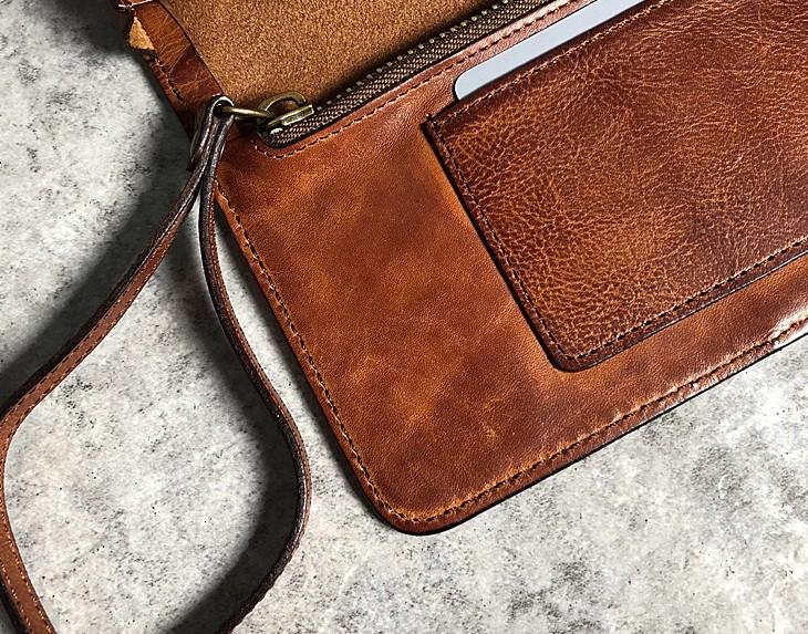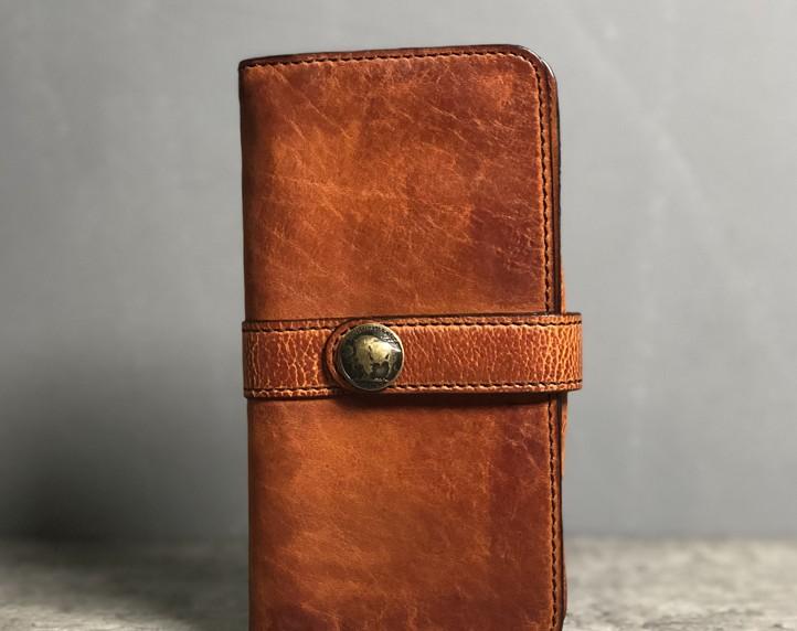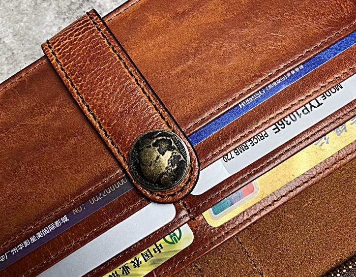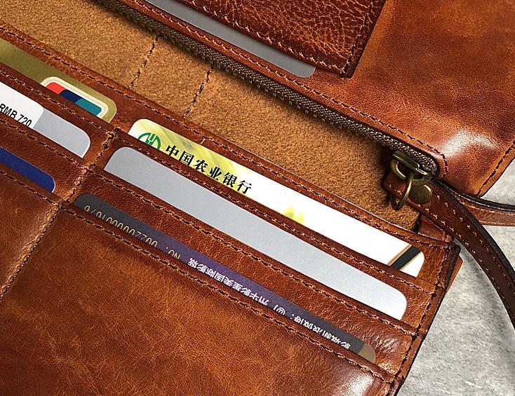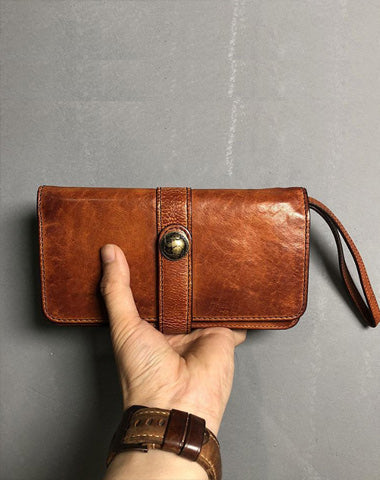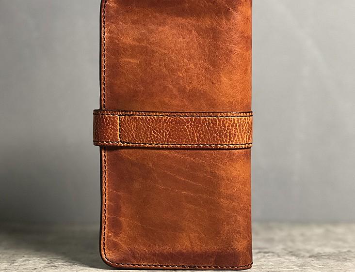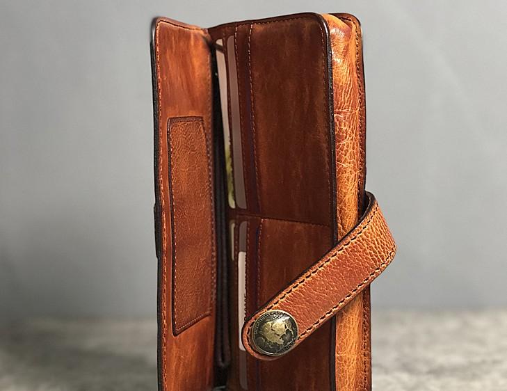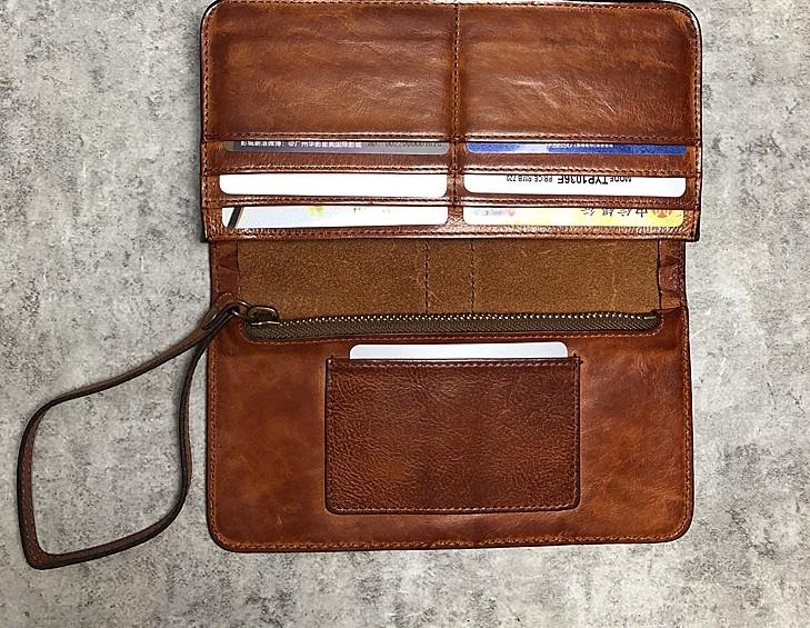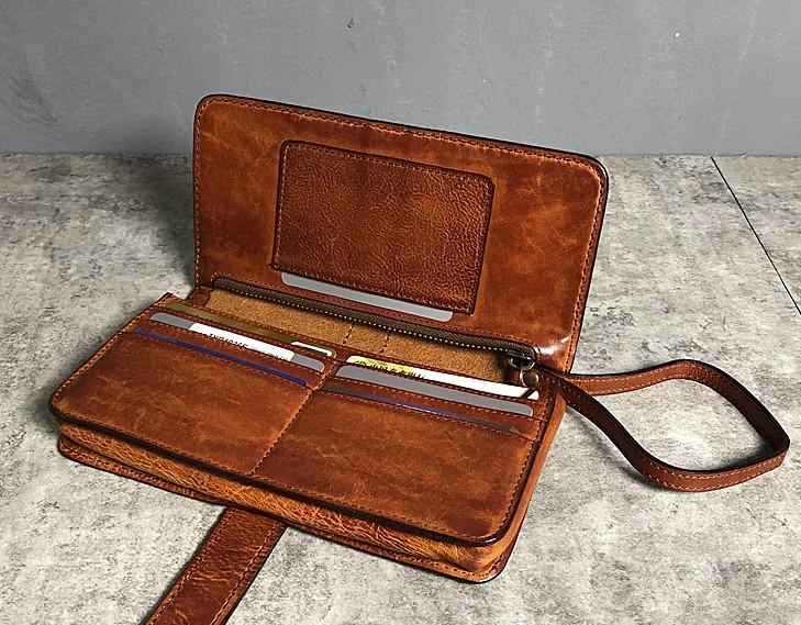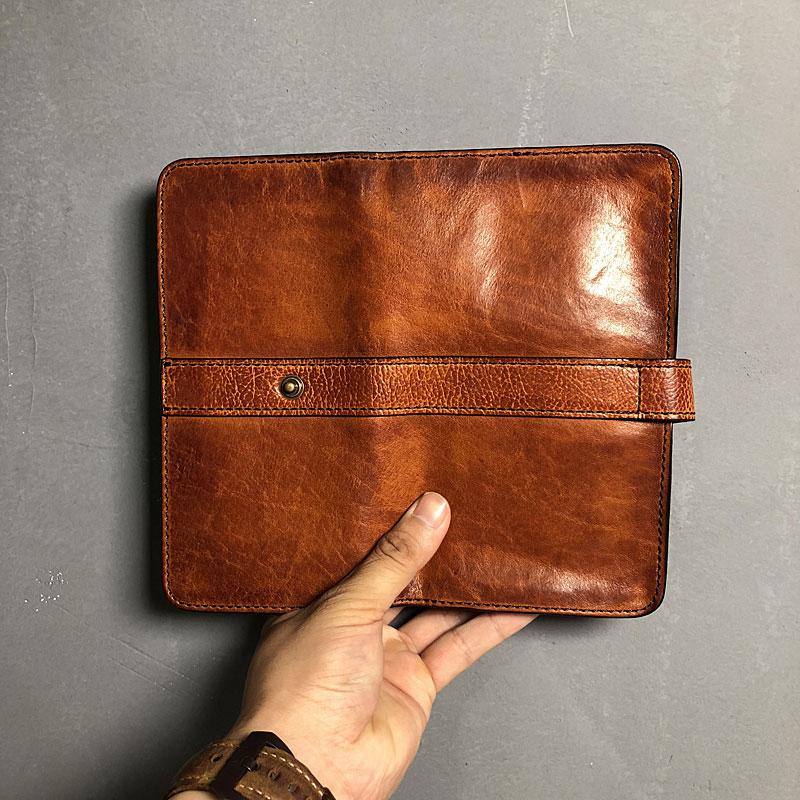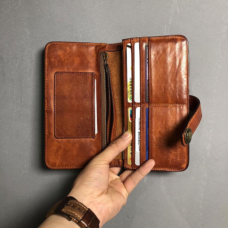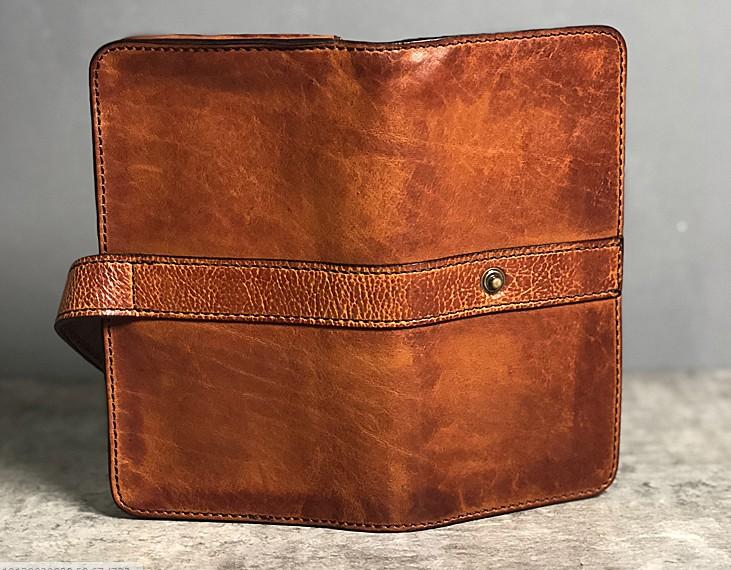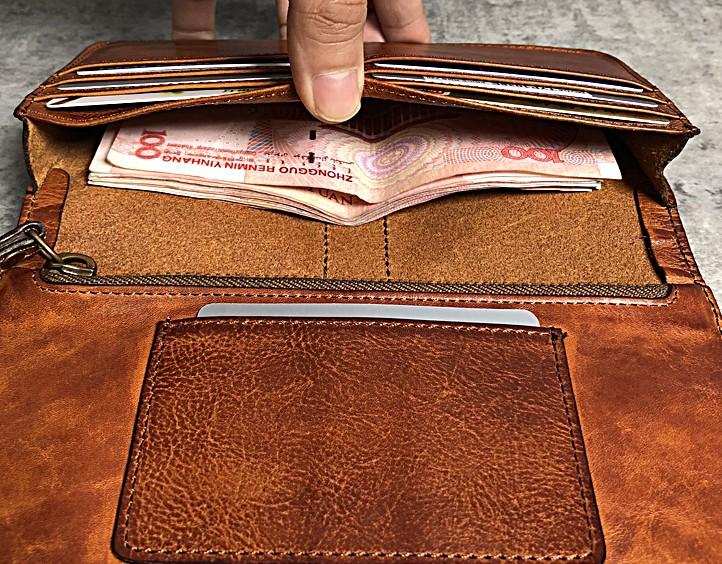 Design: Handmade Genuine Leather Mens Cool Long Leather Wallet Biker Wallet Zipper Clutch Wristlet Wallet for Men