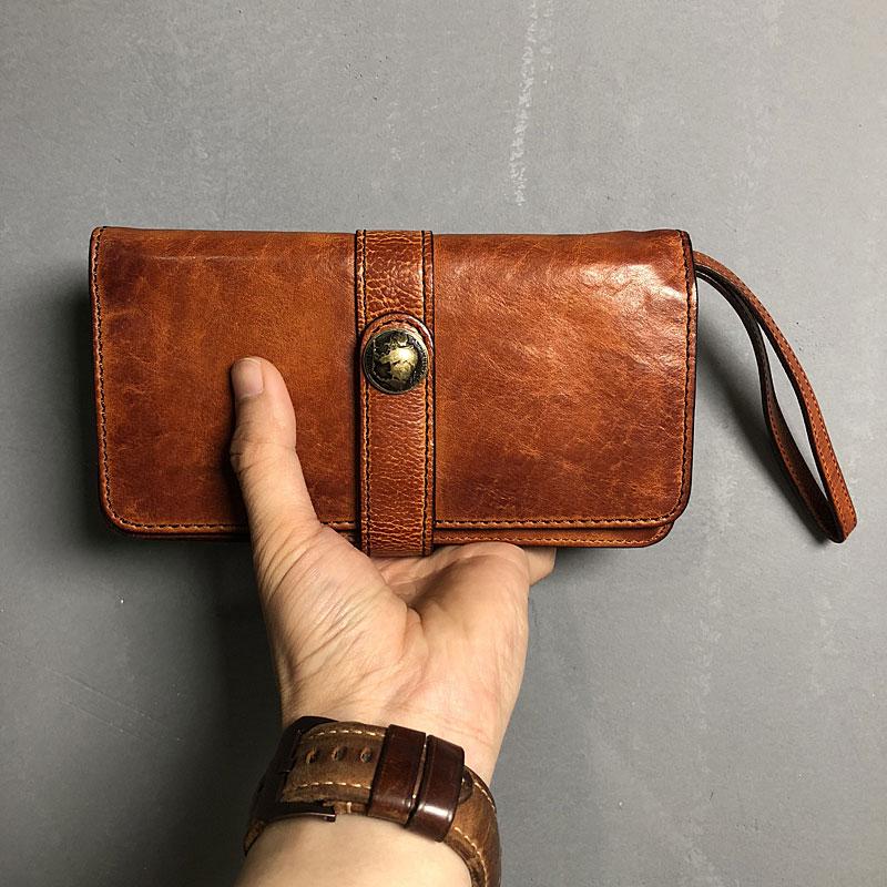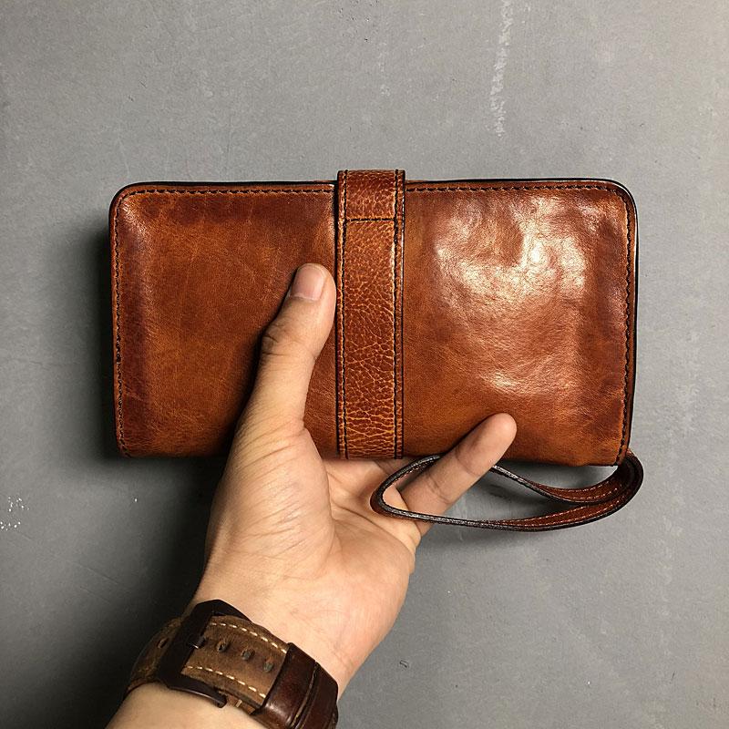 Style: Handmade Genuine Leather Mens Cool Long Leather Wallet Biker Wallet Zipper Clutch Wristlet Wallet for Men