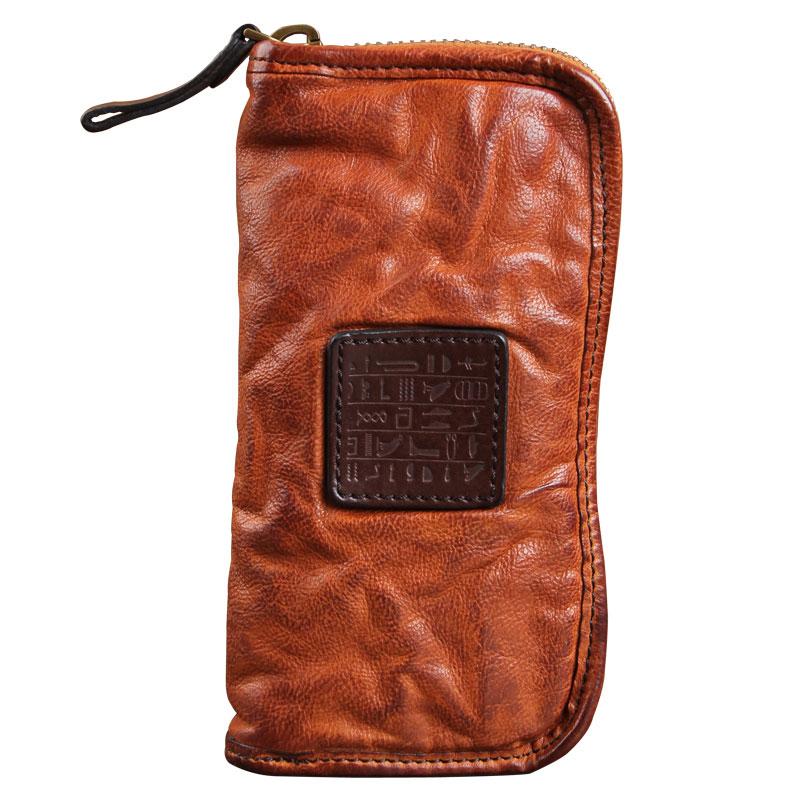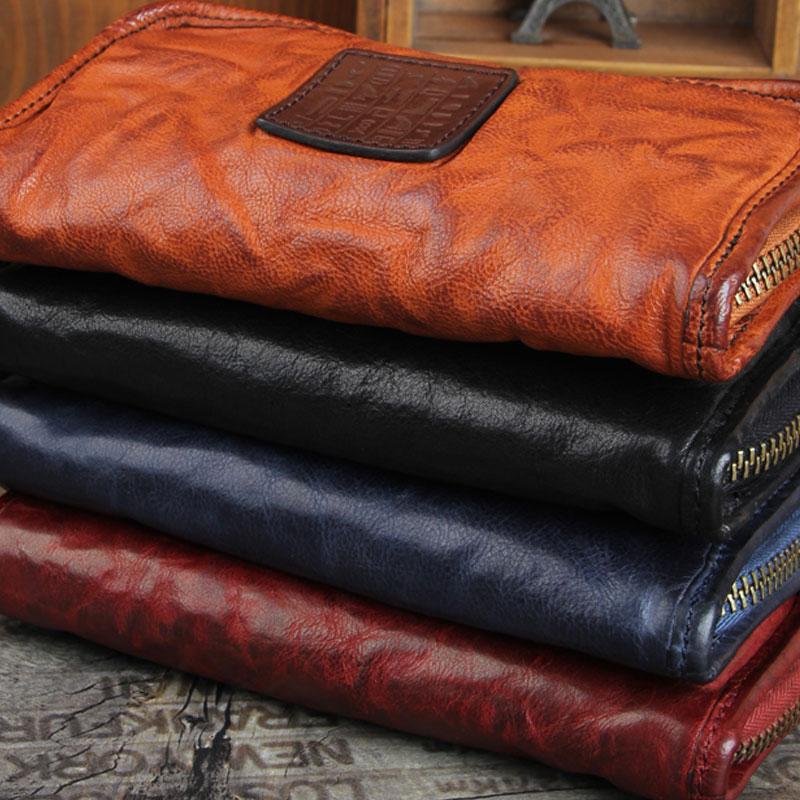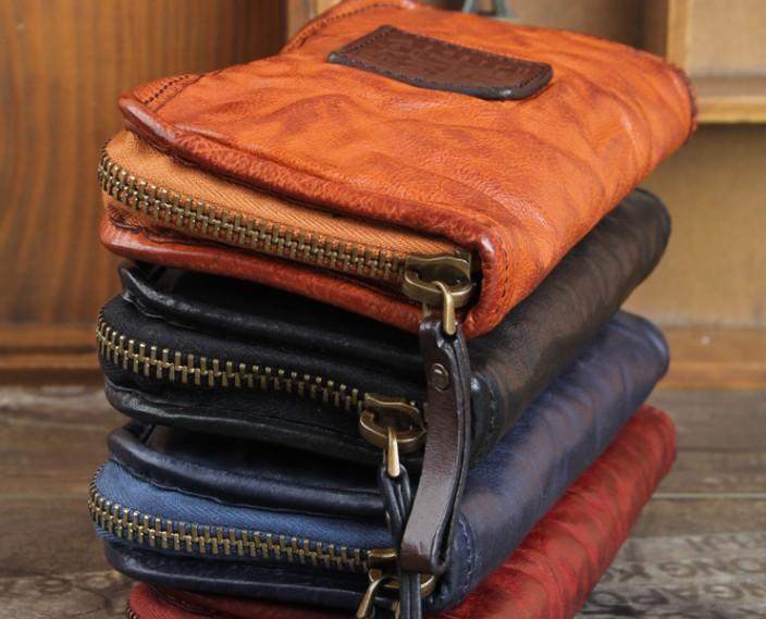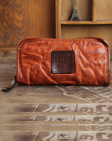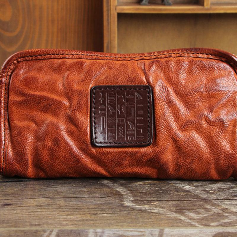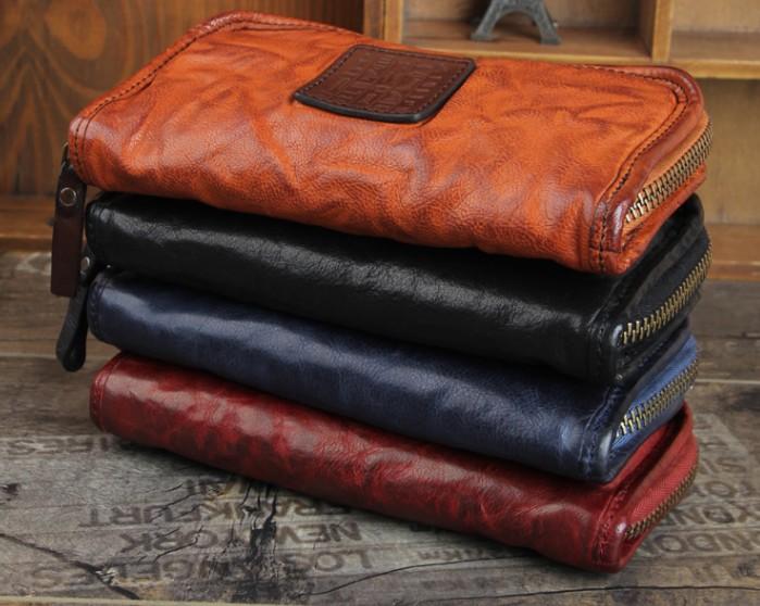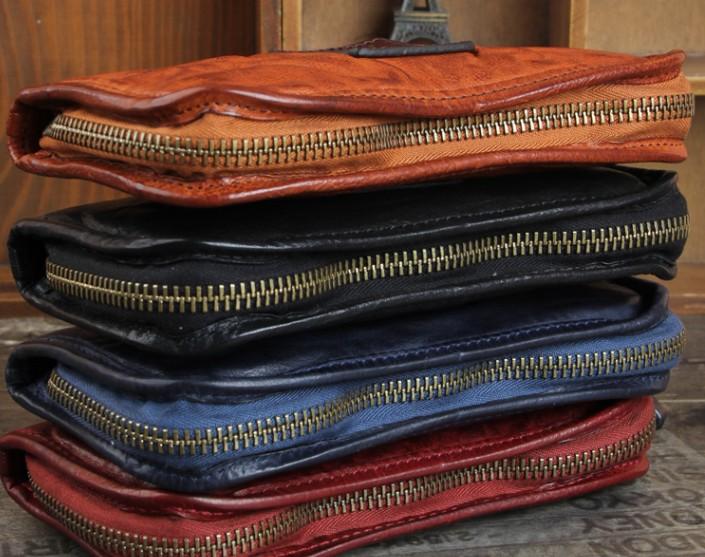 Design: Handmade Genuine Leather Mens Cool Long Leather Wallet Zipper Clutch Wristlet Wallet for Men