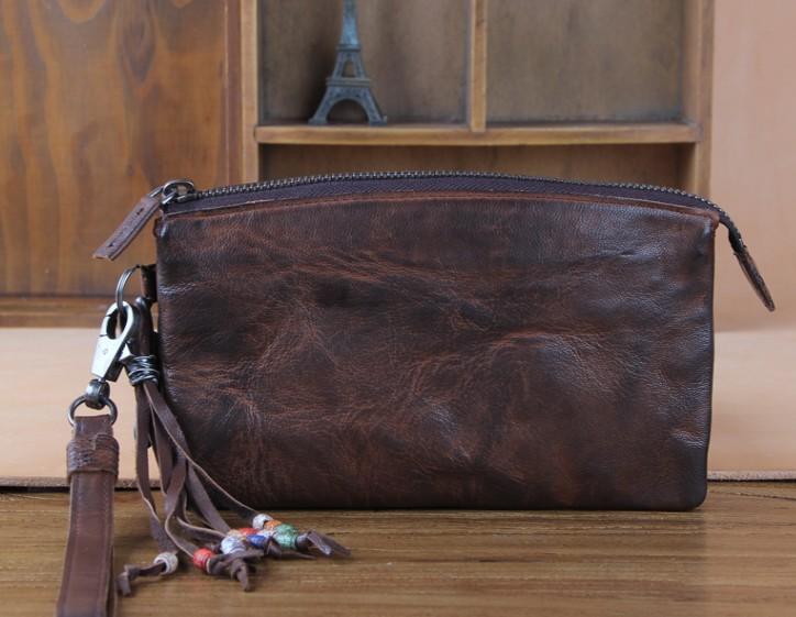 Design: Handmade Genuine Leather Mens Cool Long Leather Wallet Zipper Clutch Wristlet Wallet for Men