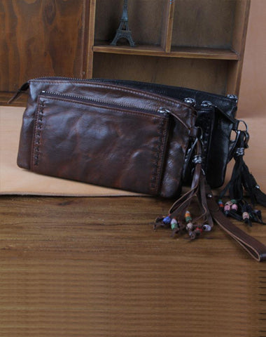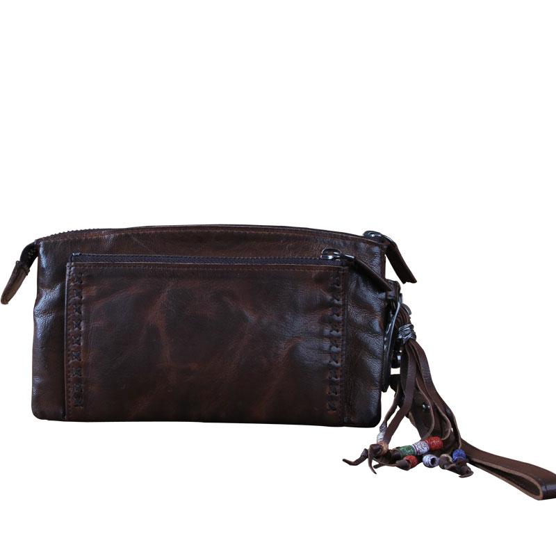 Style: Handmade Genuine Leather Mens Cool Long Leather Wallet Zipper Clutch Wristlet Wallet for Men