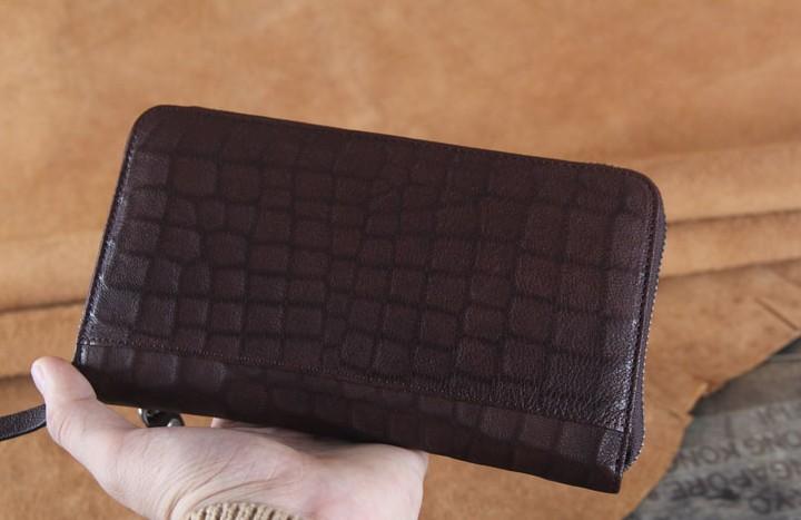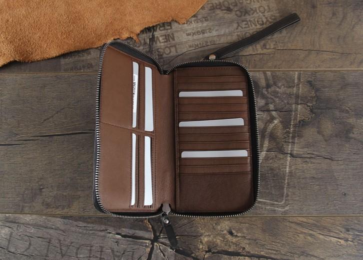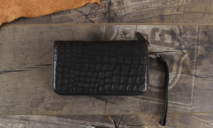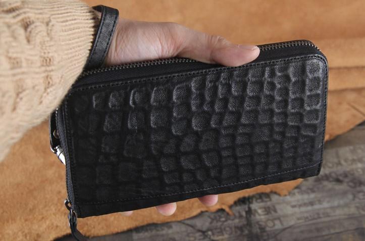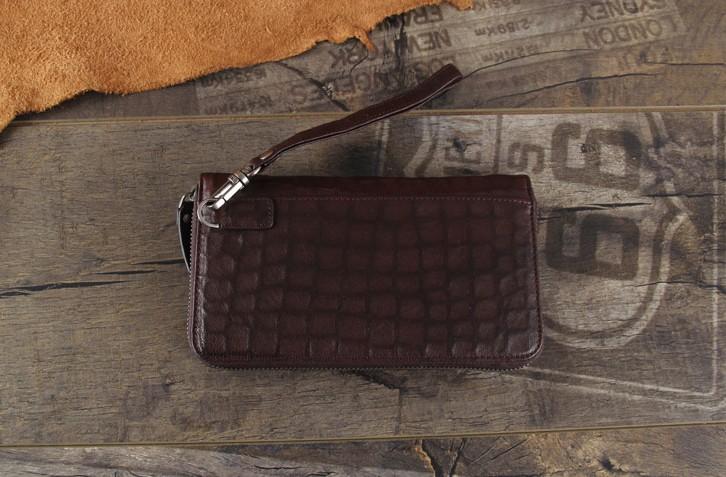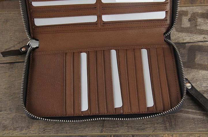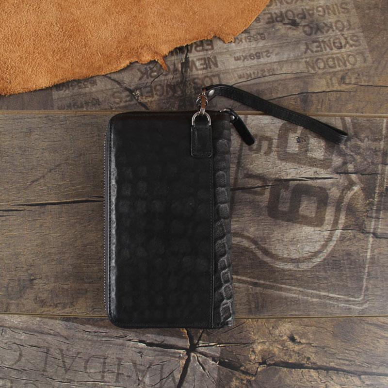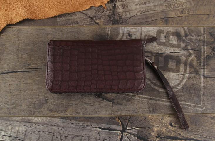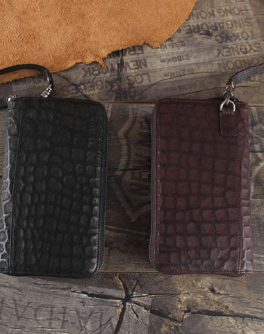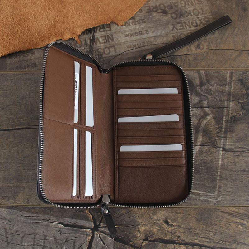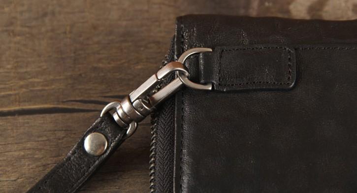 Design: Handmade Genuine Leather Mens Cool Long Leather Wallet Zipper Clutch Wristlet Wallet for Men