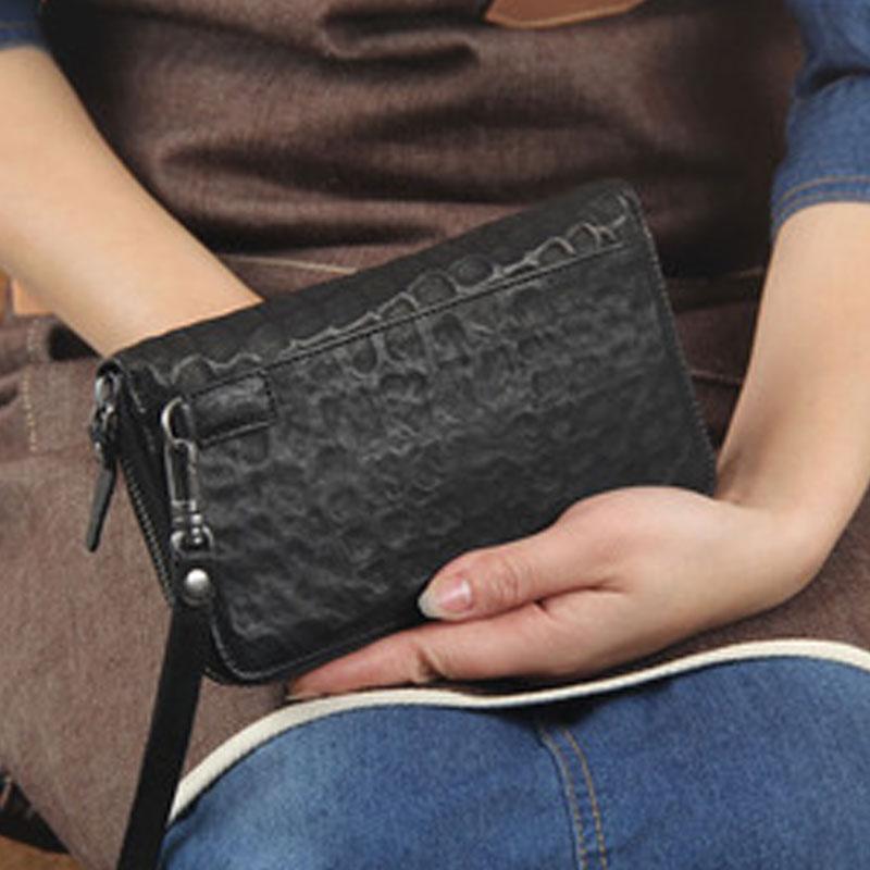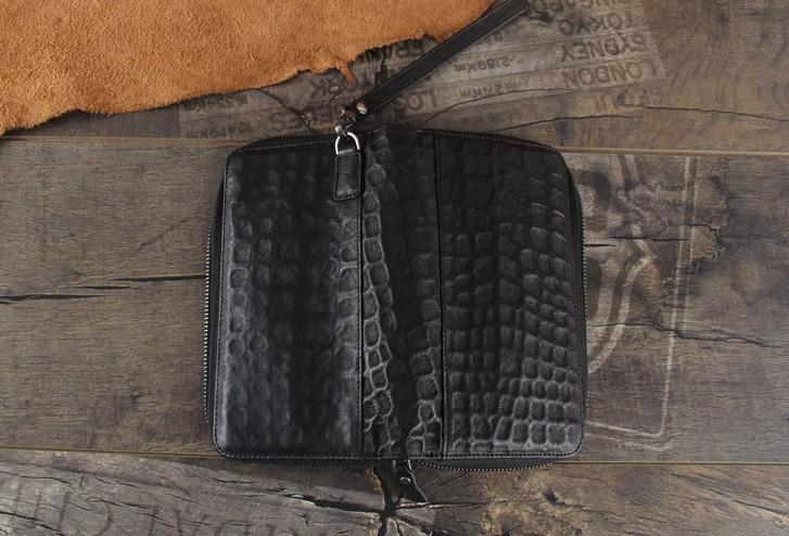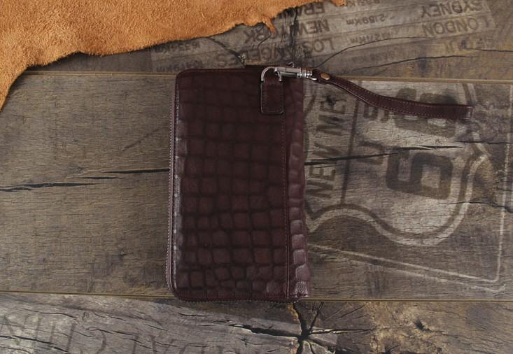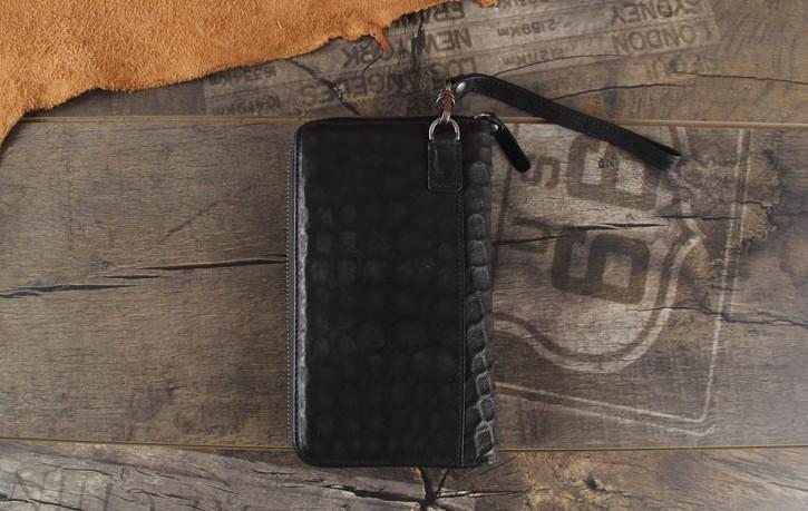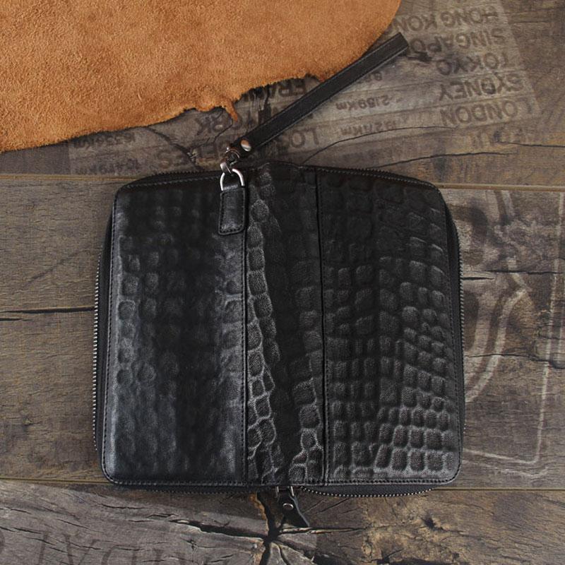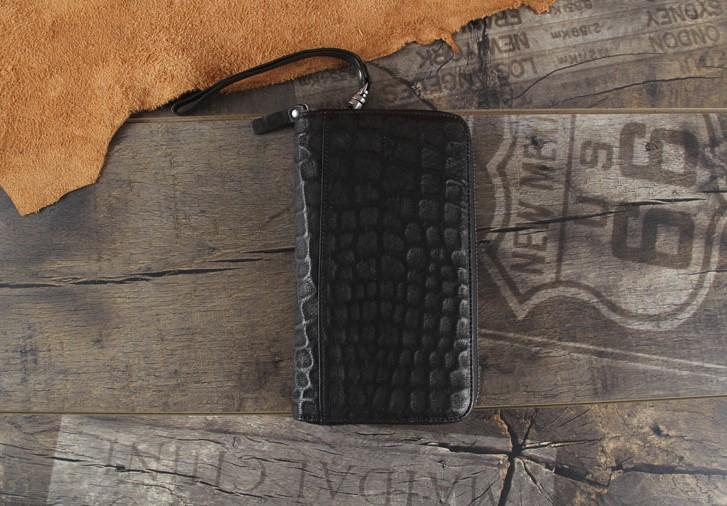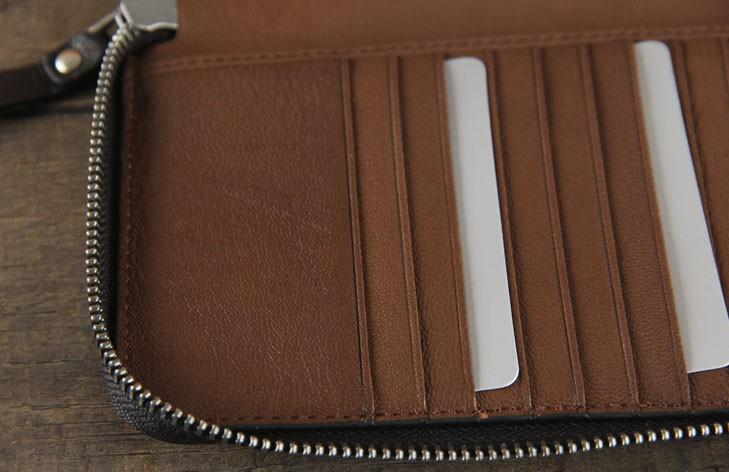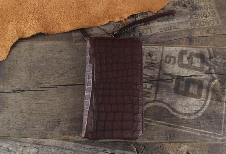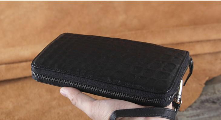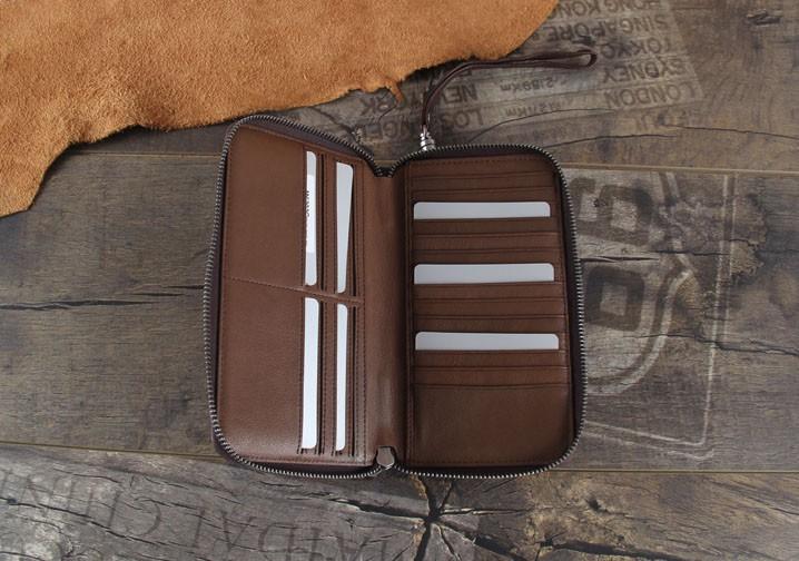 Design: Handmade Genuine Leather Mens Cool Long Leather Wallet Zipper Clutch Wristlet Wallet for Men