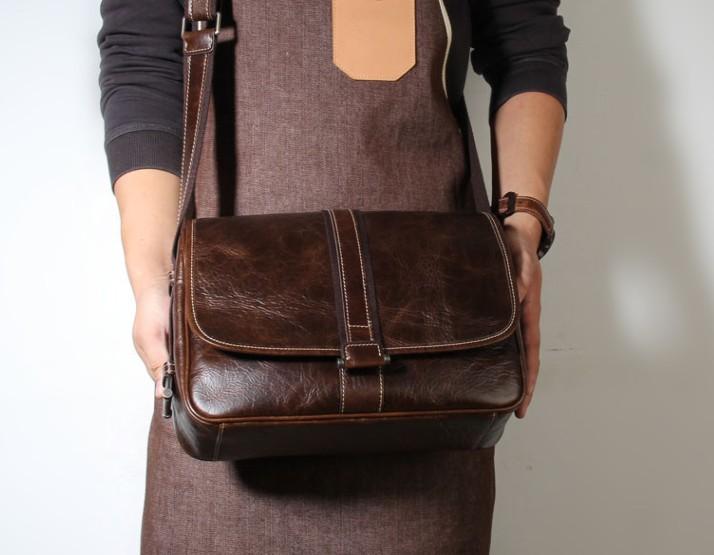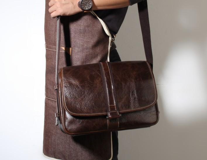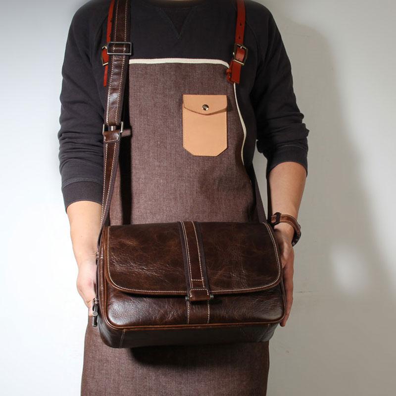 Design: Handmade Genuine Leather Mens Cool Messenger Bag Sling Bag Chest Bag Bike Bag Cycling Bag for men