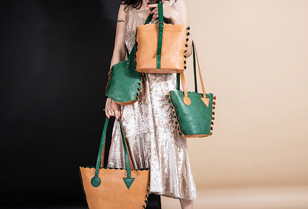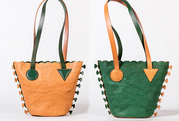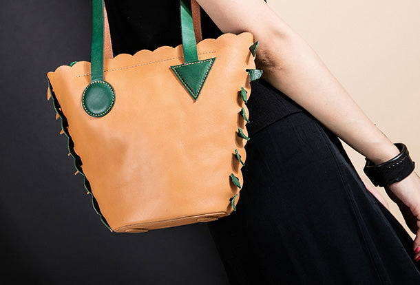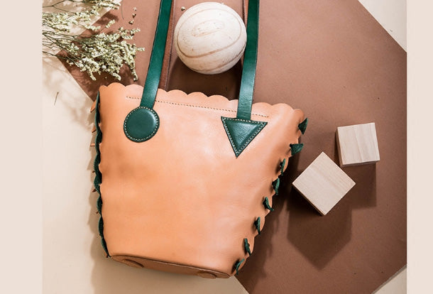 Handmade Genuine Leather Shopper Bag Bucket Bag Shoulder Bag Purse For Women