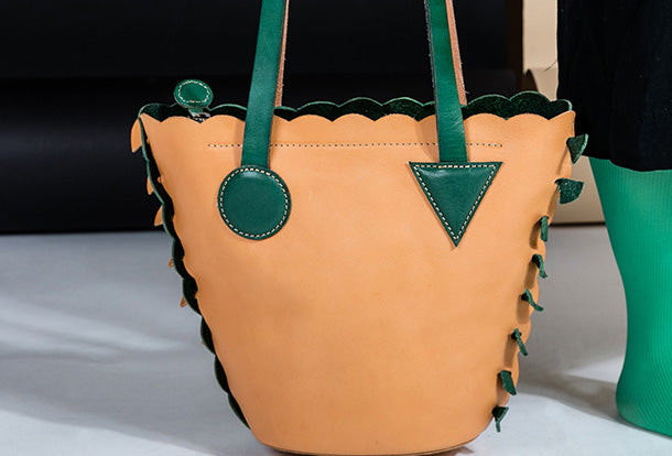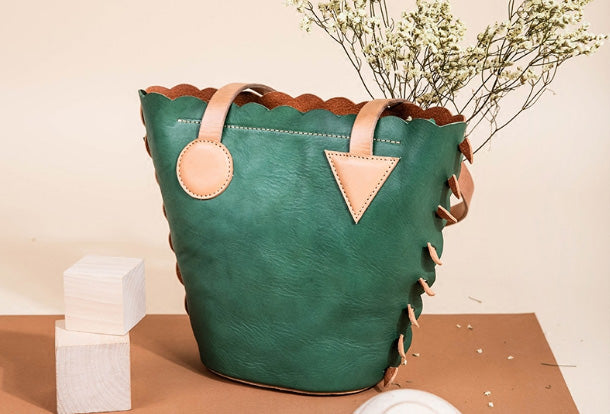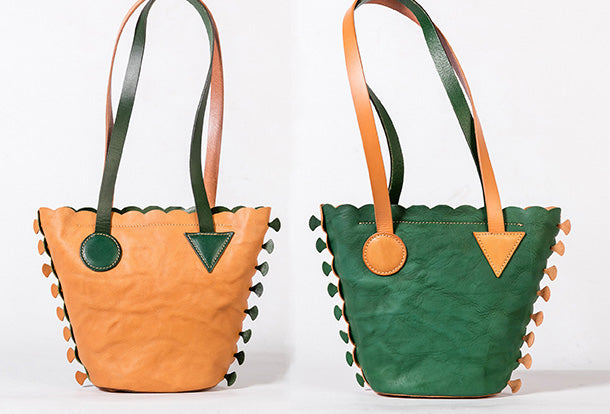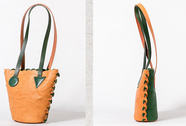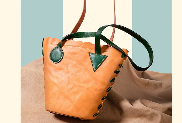 Style: Handmade Genuine Leather Shopper Bag Bucket Bag Shoulder Bag Purse For Women