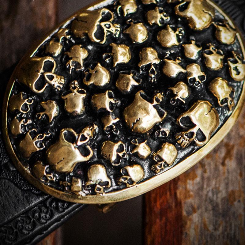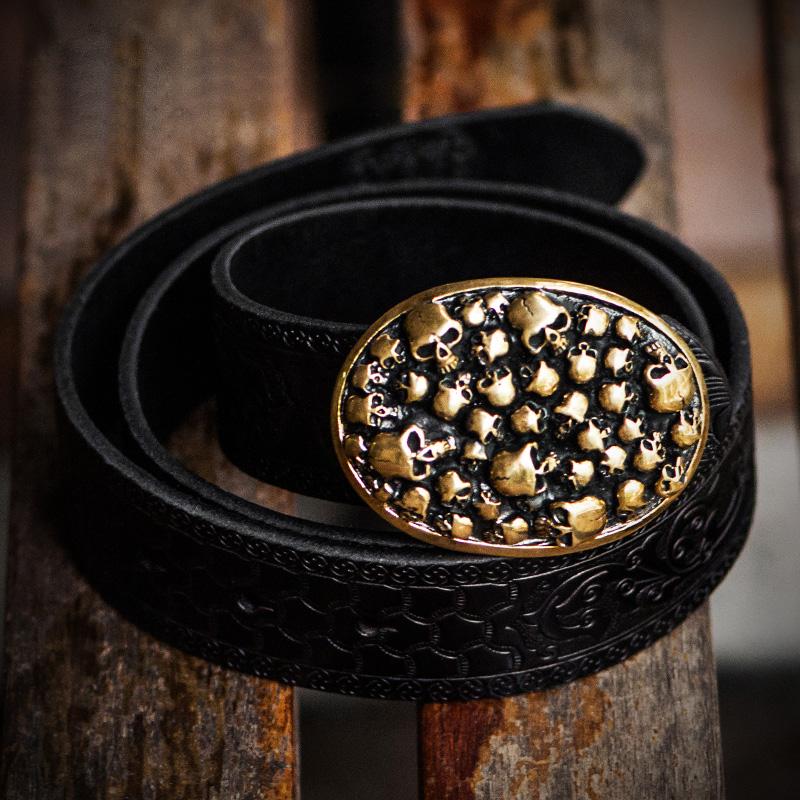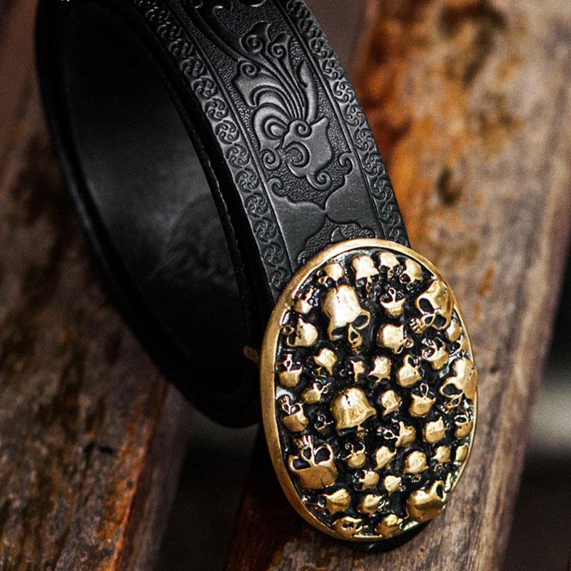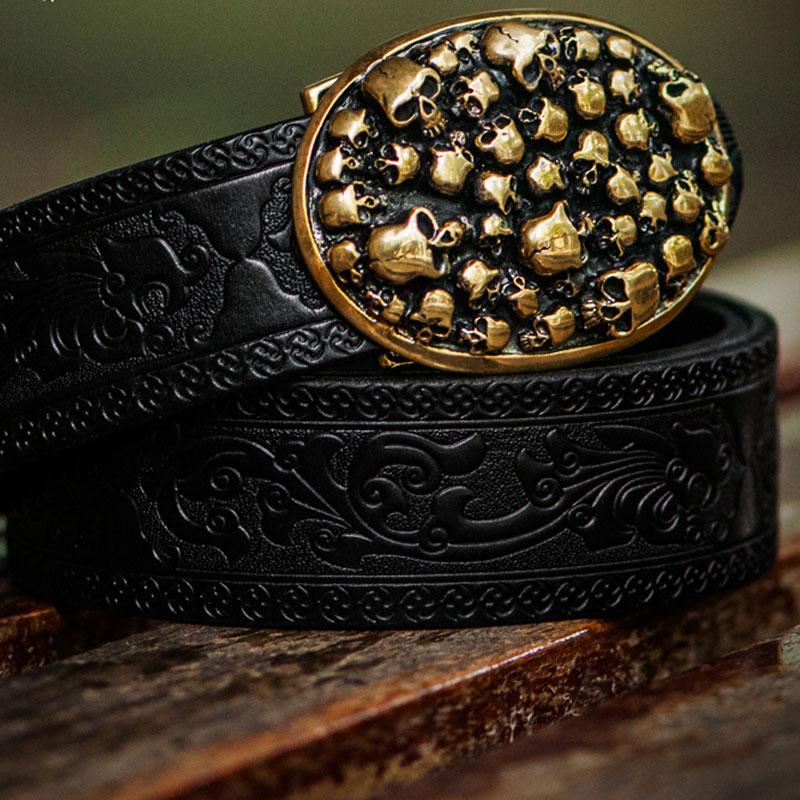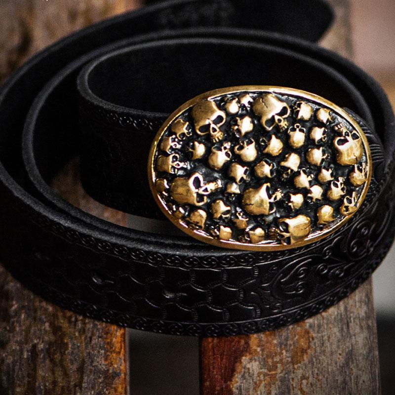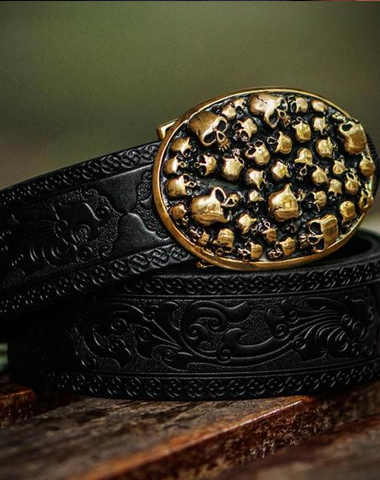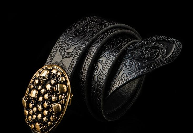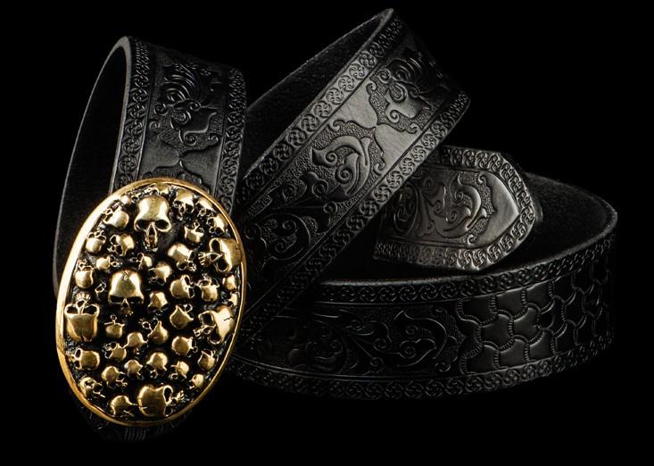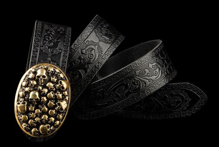 Style: Handmade Genuine Leather Skull Mens Belt Custom Cool Leather Men Black Belt for Men