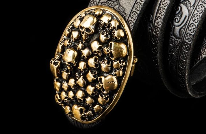 Design: Handmade Genuine Leather Skull Mens Belt Custom Cool Leather Men Black Belt for Men