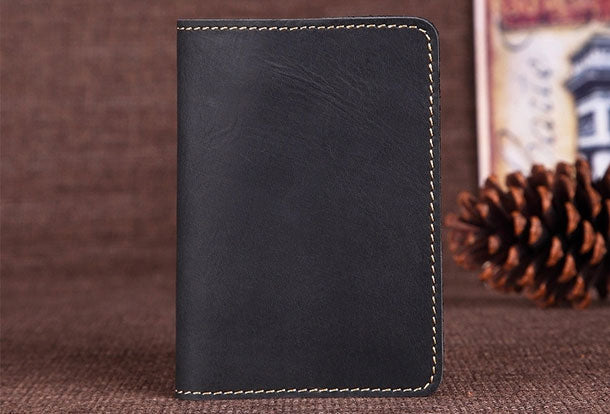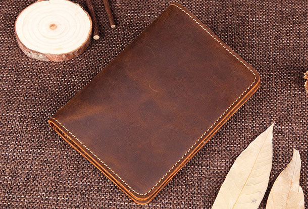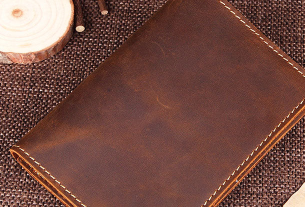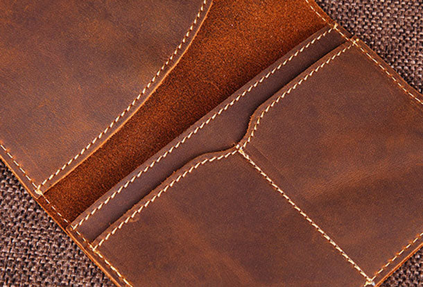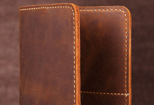Handmade Genuine Leather Slim Wallet Bifold Long Wallet Passport Purse Bag For Mens