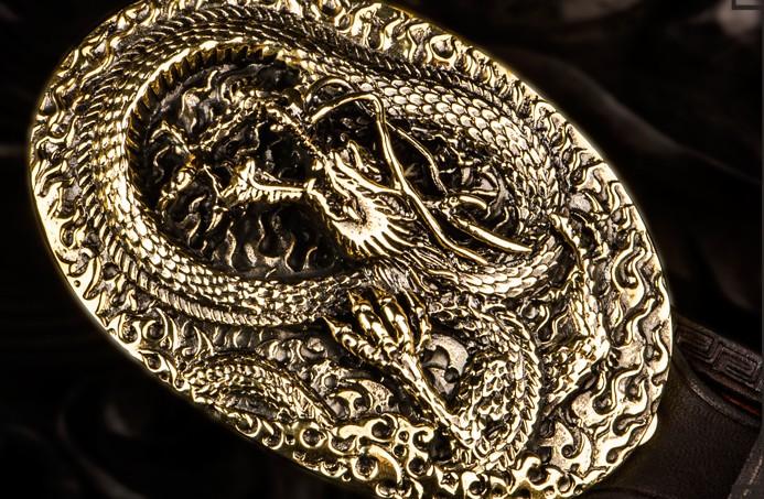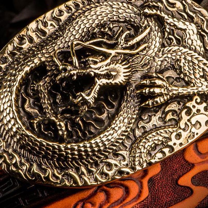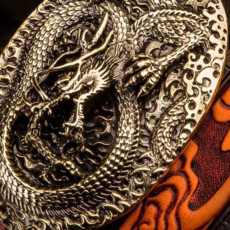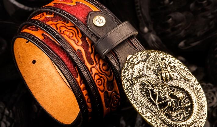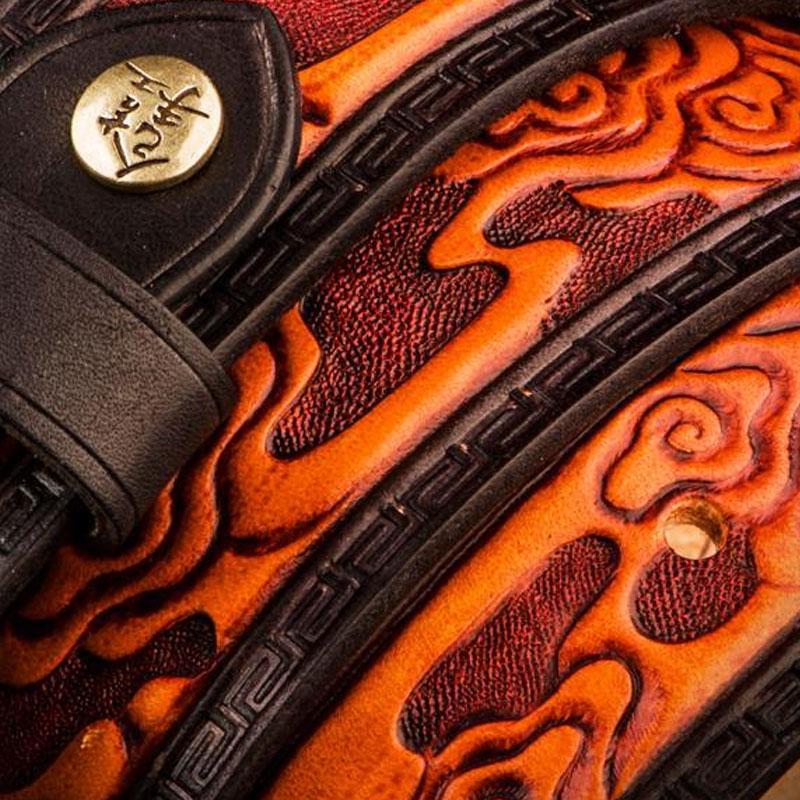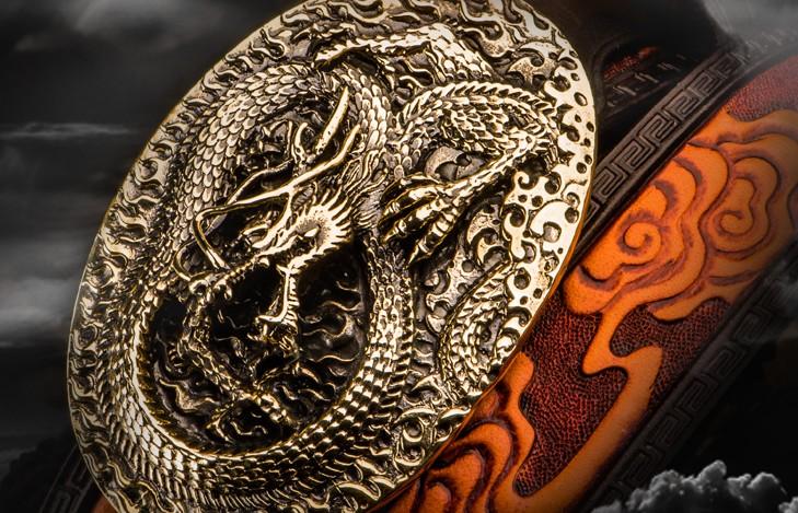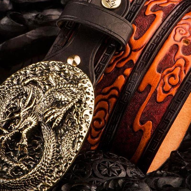 Style: Handmade Genuine Leather Tooled Chinese Dragon Mens Belt Custom Cool Leather Men Belt for Men