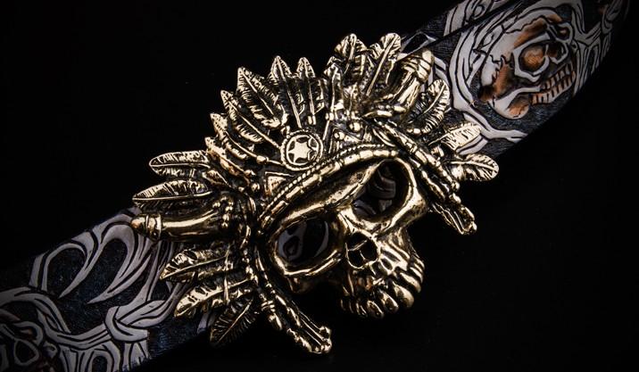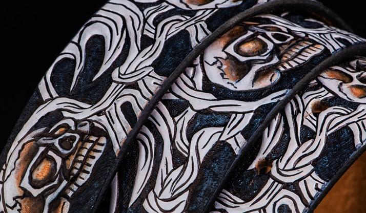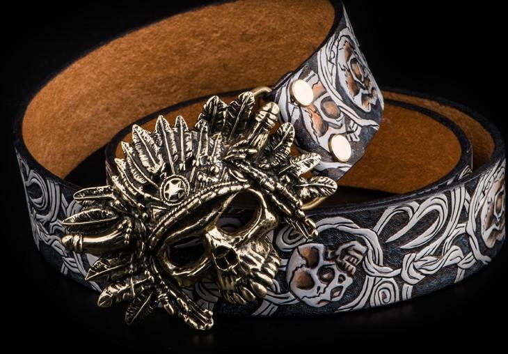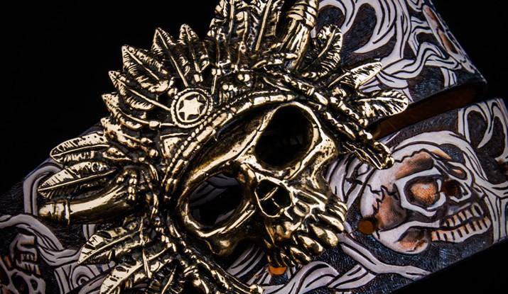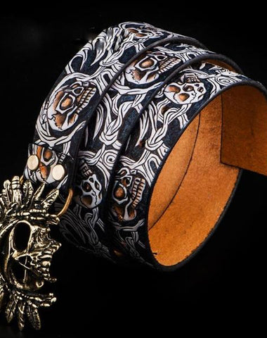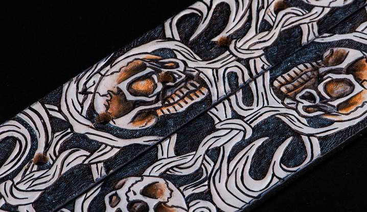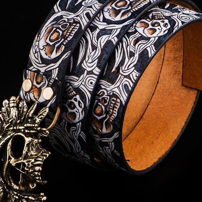 Style: Handmade Genuine Leather Tooled Skull Mens Belt Custom Cool Leather Men Belt for Men