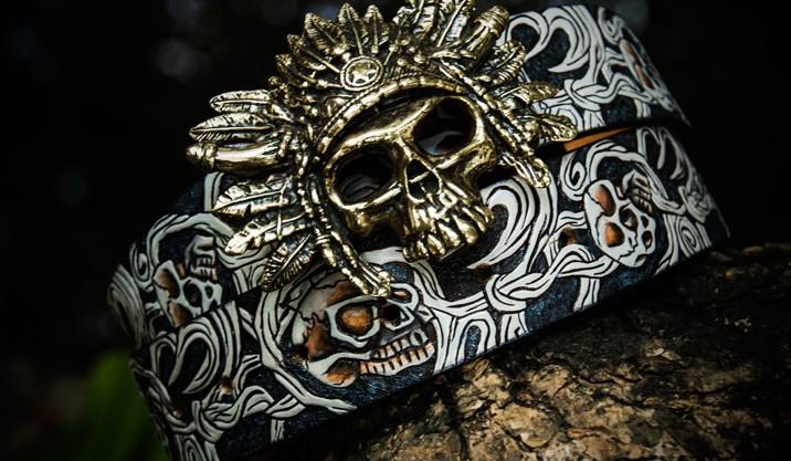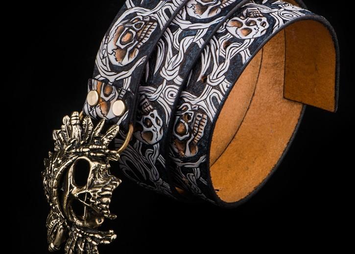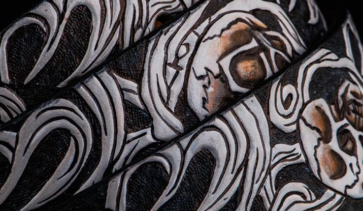 Design: Handmade Genuine Leather Tooled Skull Mens Belt Custom Cool Leather Men Belt for Men