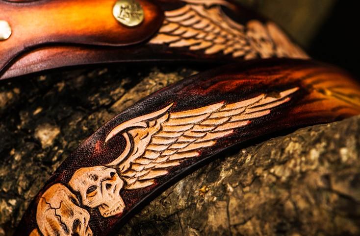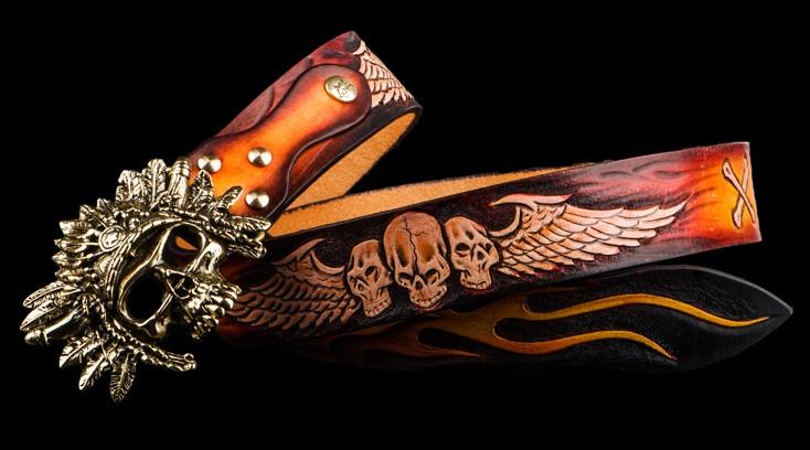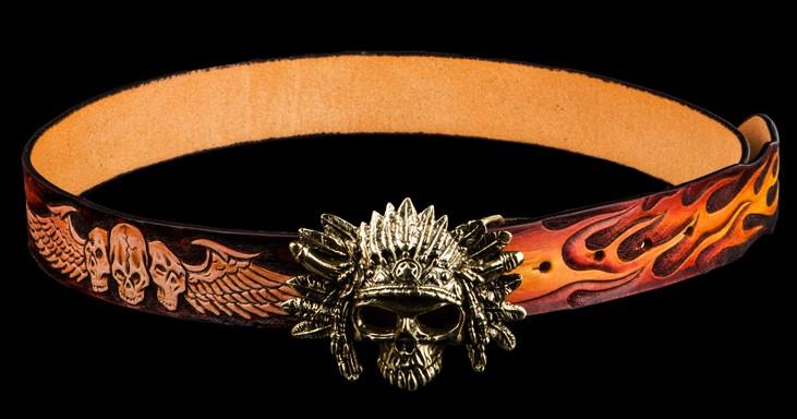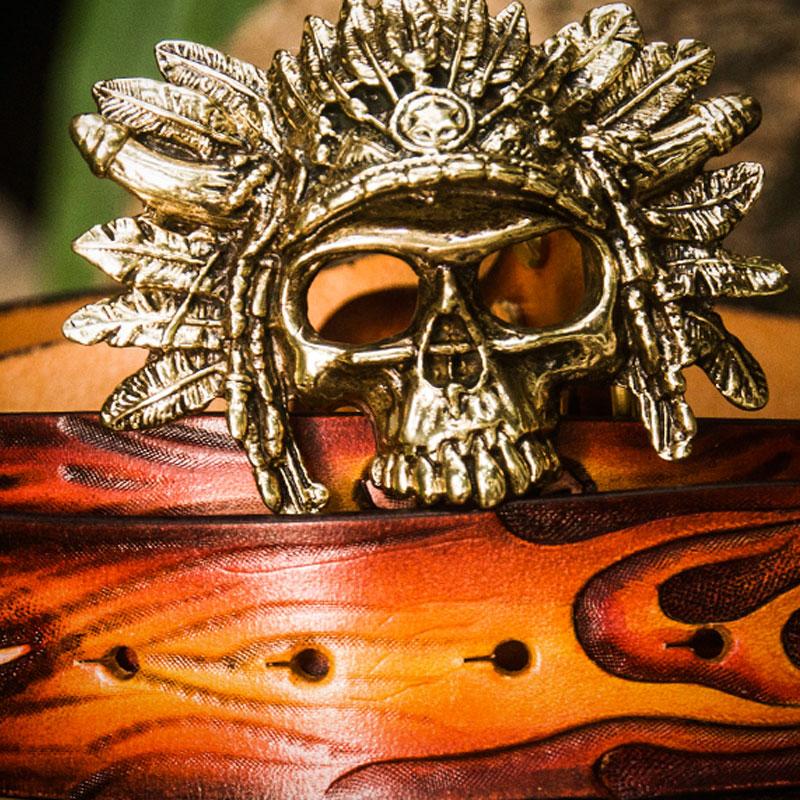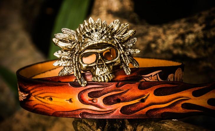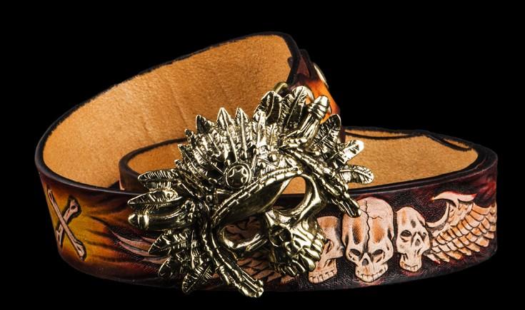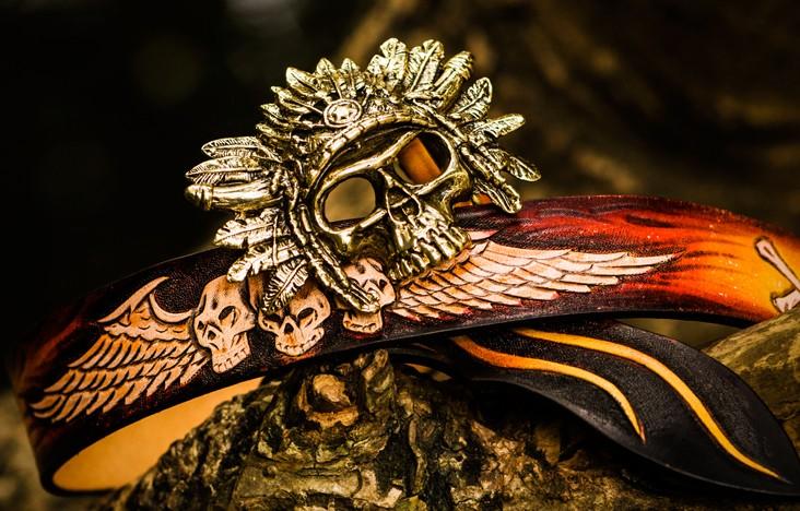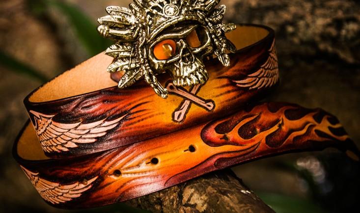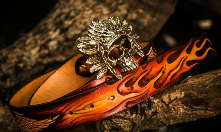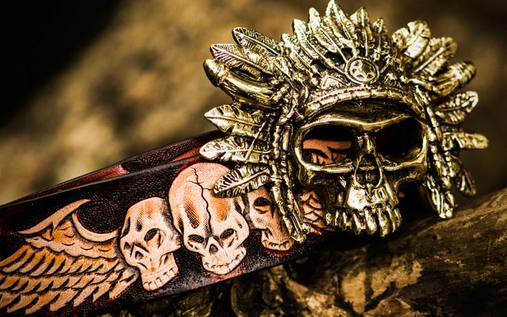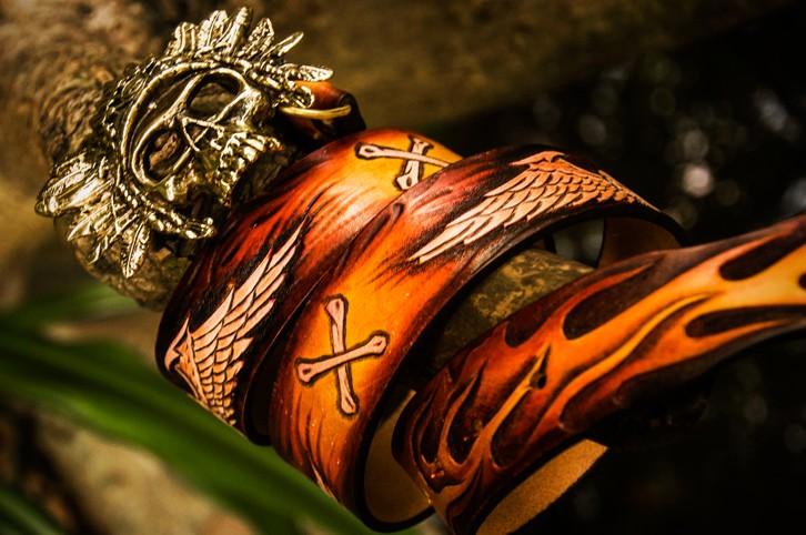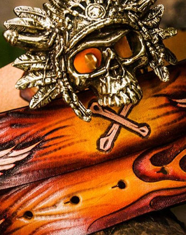 Style: Handmade Genuine Leather Tooled Skull Mens Belt Custom Cool Leather Men Belt for Men