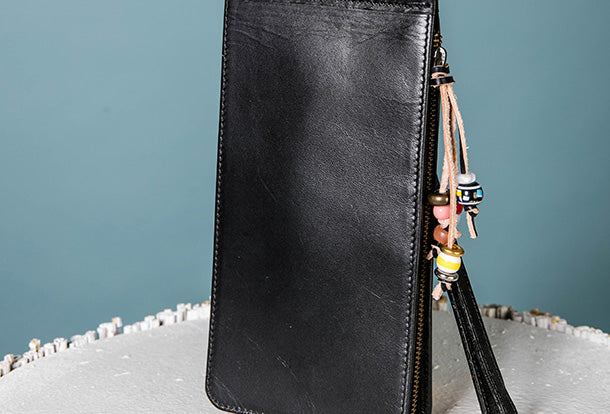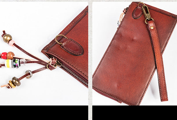 Design: Handmade Genuine Leather Wallet Clutch Zip Cards Wallet Long Wallet For Men Women