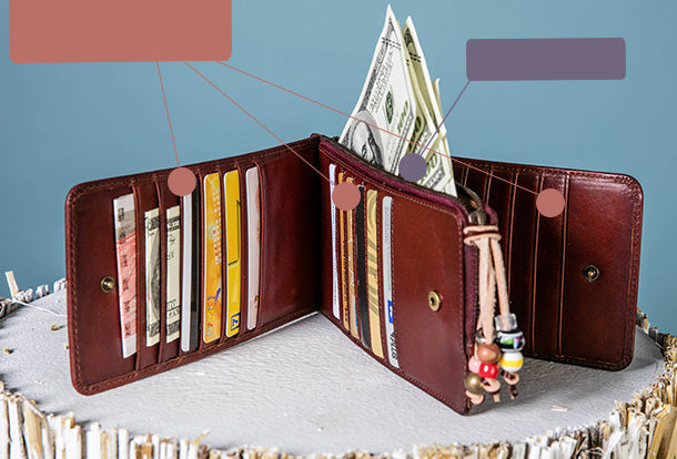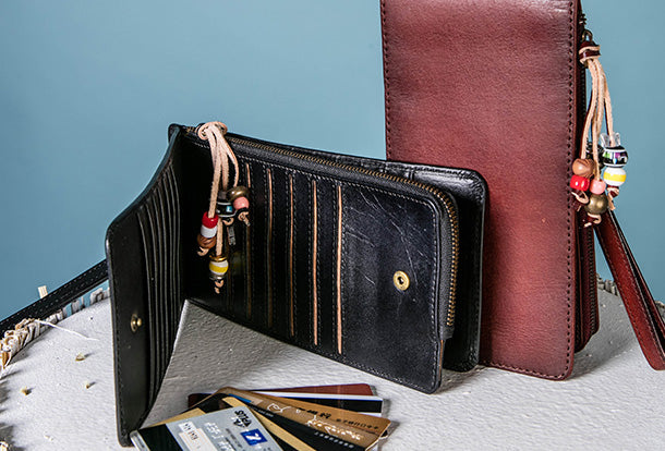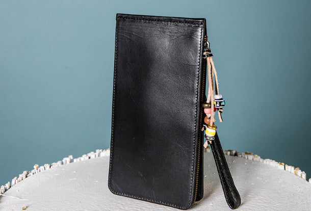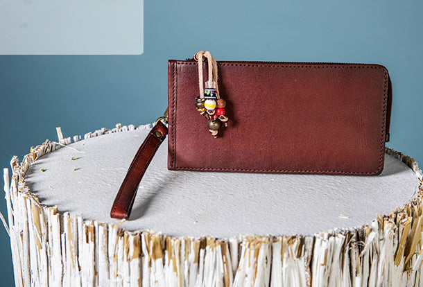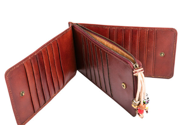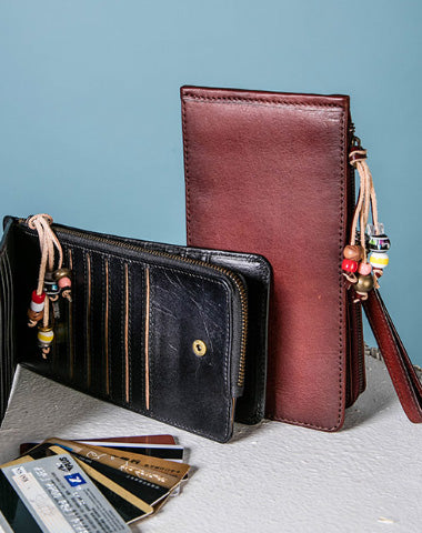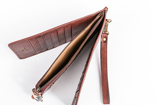 Style: Handmade Genuine Leather Wallet Clutch Zip Cards Wallet Long Wallet For Men Women