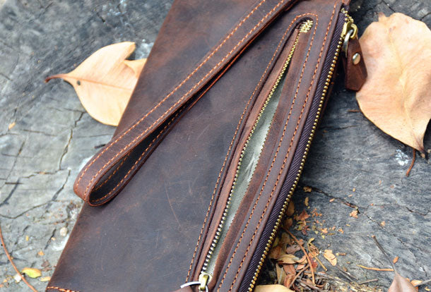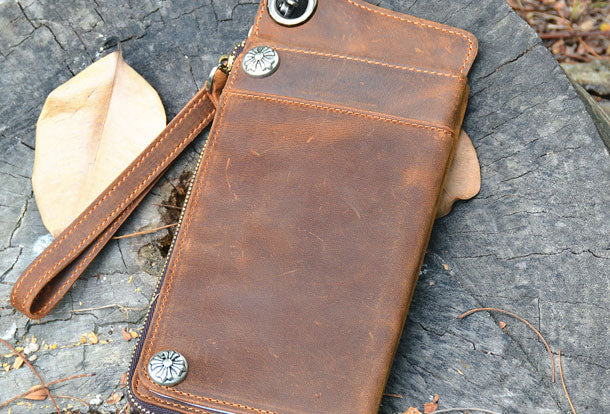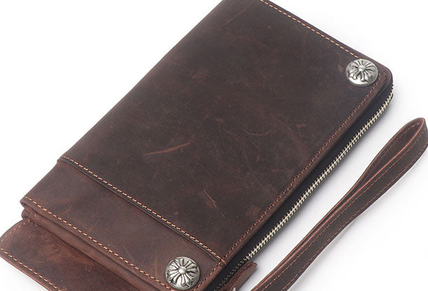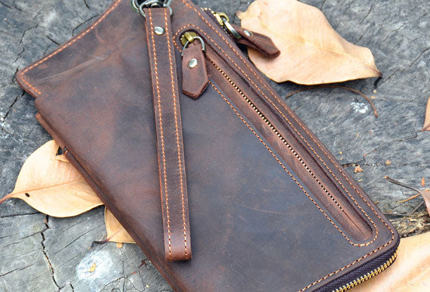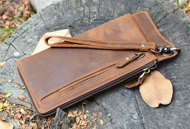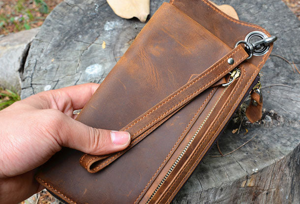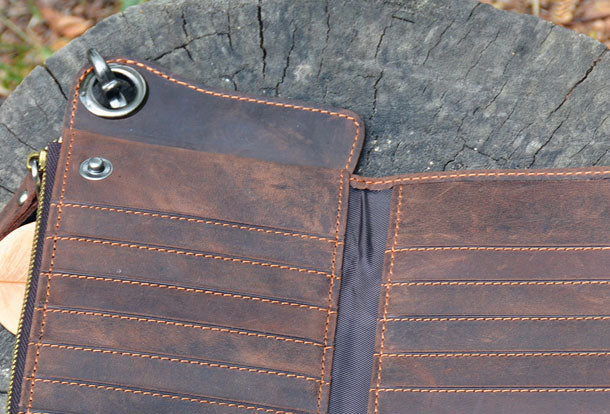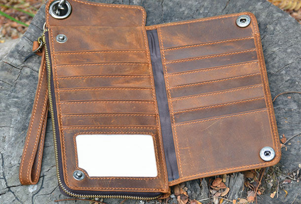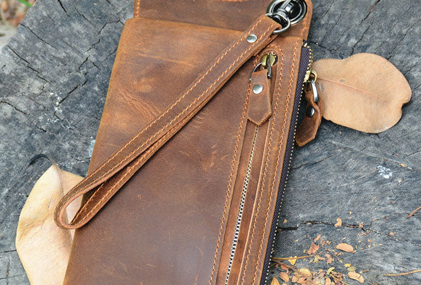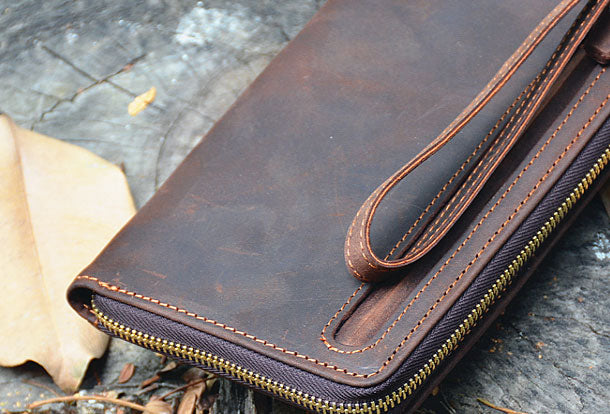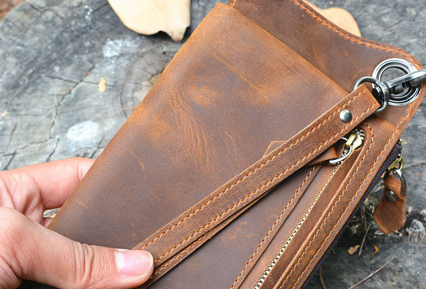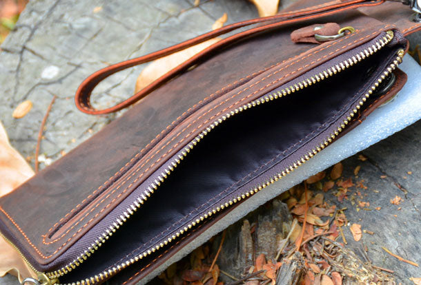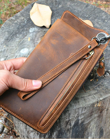 Style: Handmade Genuine Leather Wallet billfold Leather Wallet Slim Bifold Wallet Wristlet Bag For Women