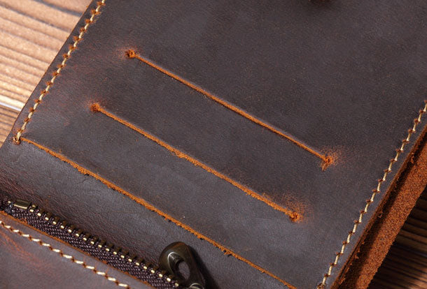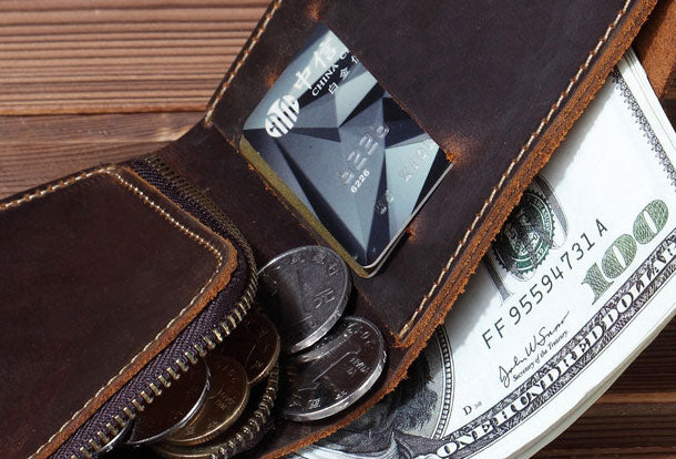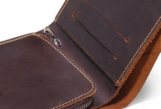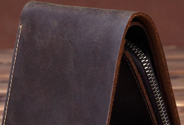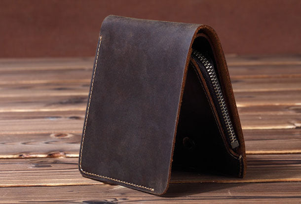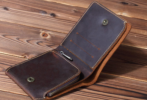 Style: Handmade Genuine Leather Wallet billfold Leather Wallet Slim Bifold Wallet Wristlet Bag For Women