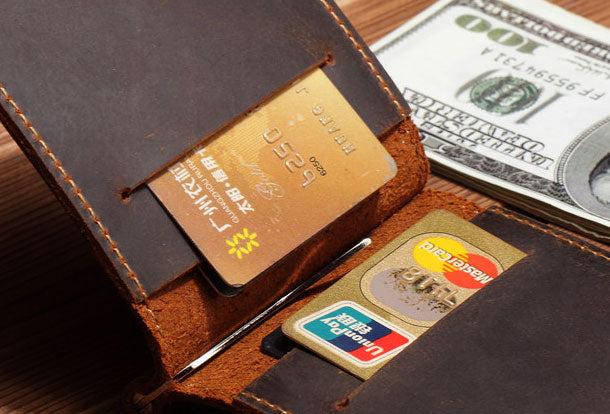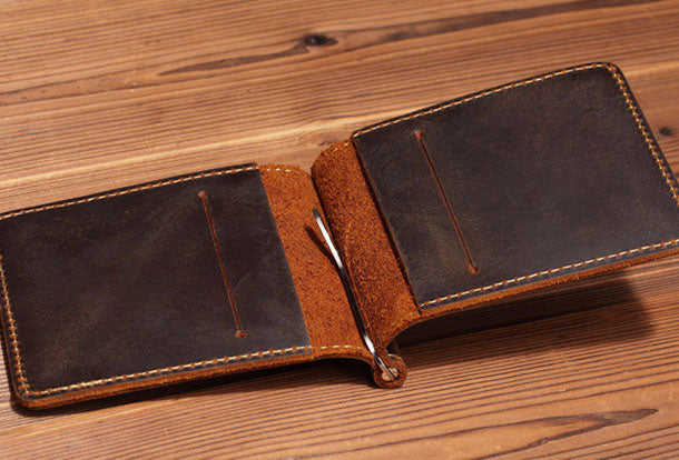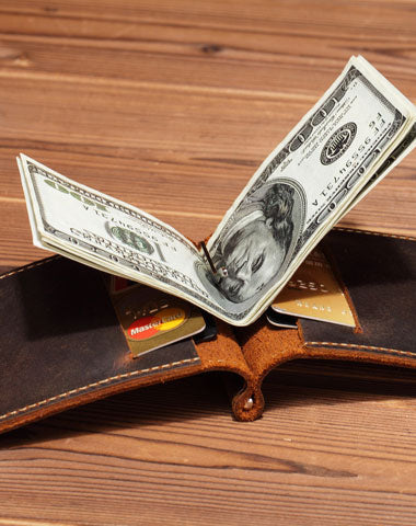 Style: Handmade Genuine Leather Wallet billfold Leather Wallet Slim Bifold Wallet Wristlet Bag For Women