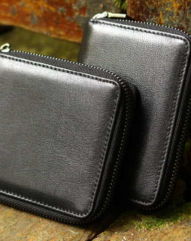 Design: Handmade Genuine Leather Wallet billfold Leather Wallet Slim Bifold Wallet Wristlet Bag For Women