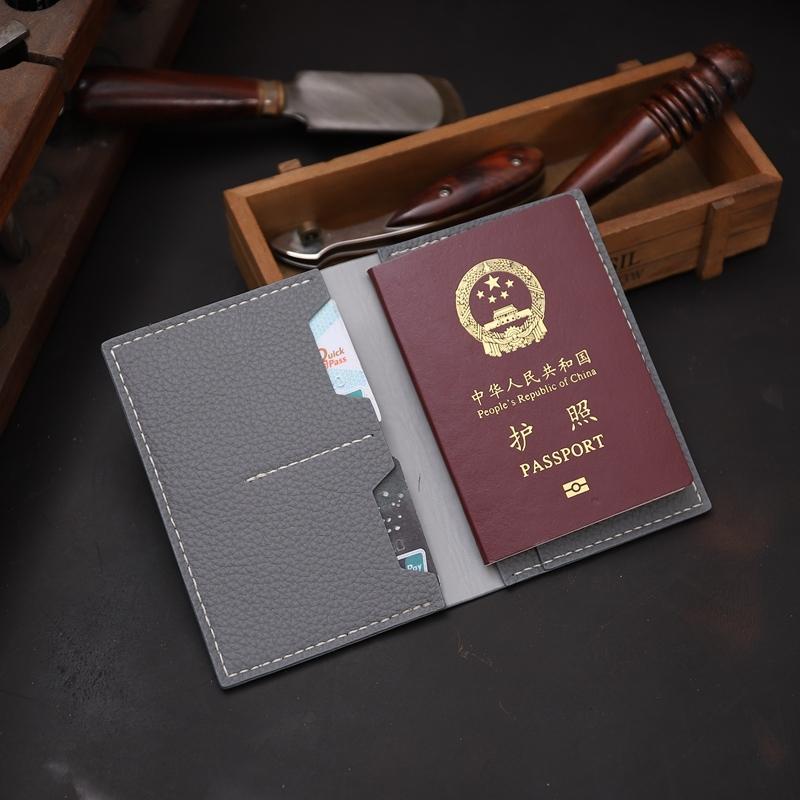 Style: Handmade Gray Mens Slim Travel Wallets Personalized Leather Passport Wallets for Men