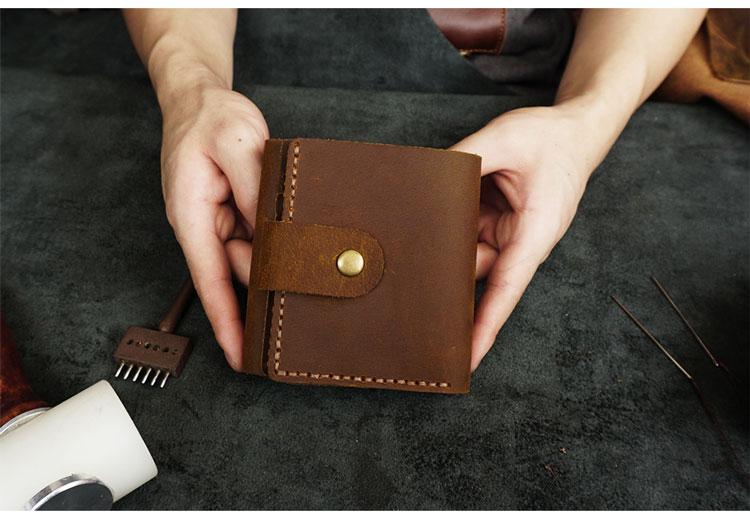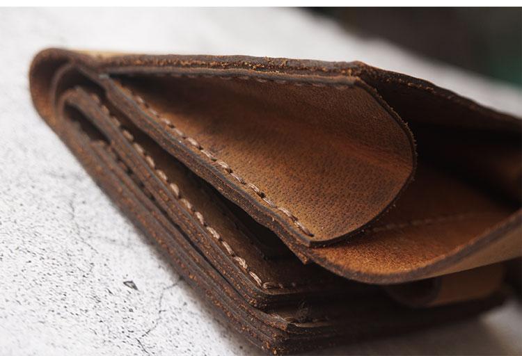 Handmade Green Leather Mens Trifold Billfold Wallet With Coin Pocket Brown Small Wallet for Men