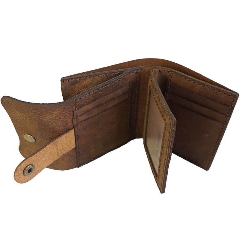 Style: Handmade Brown Leather Mens Trifold Billfold Wallet With Coin Pocket Blue Small Wallet for Men