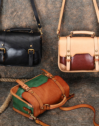 Design: Handmade Leather Womens Satchel Shoulder Bag Small School Handbag Crossbody Purses for Ladies