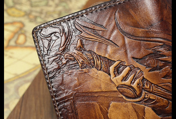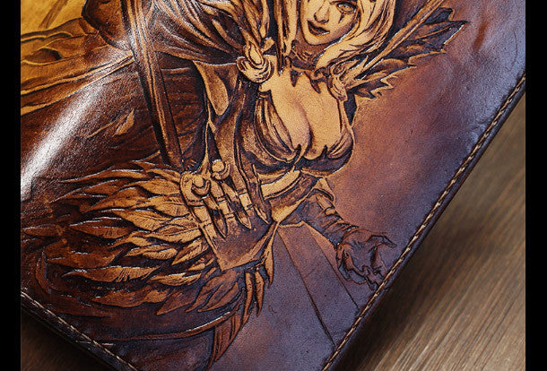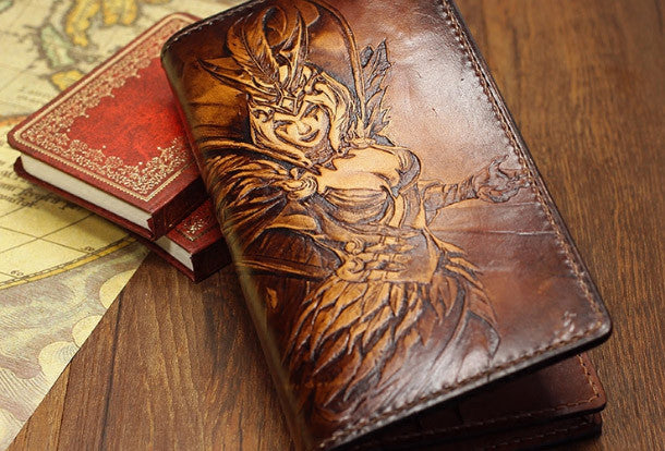 Handmade League of Legends LOL LeBlanc-the-Deceiver carved leather custom long wallet for men gamers