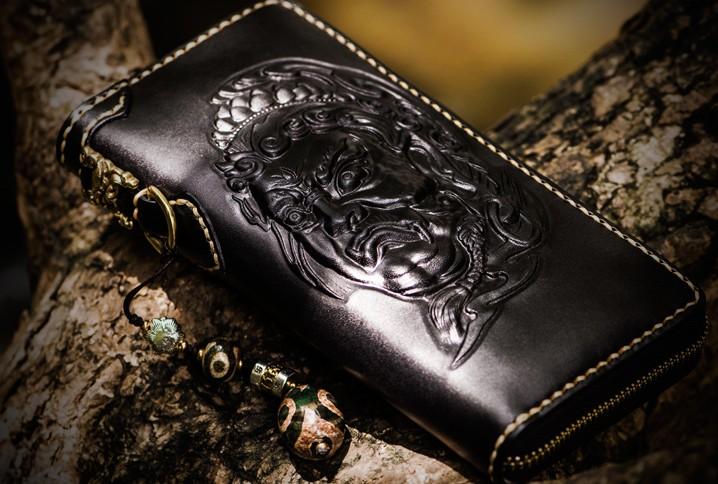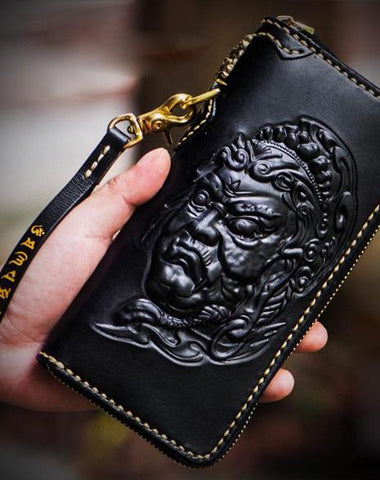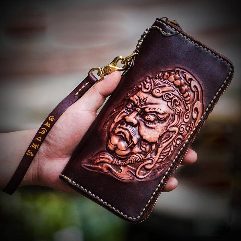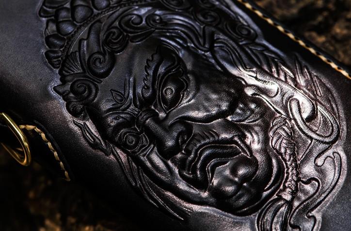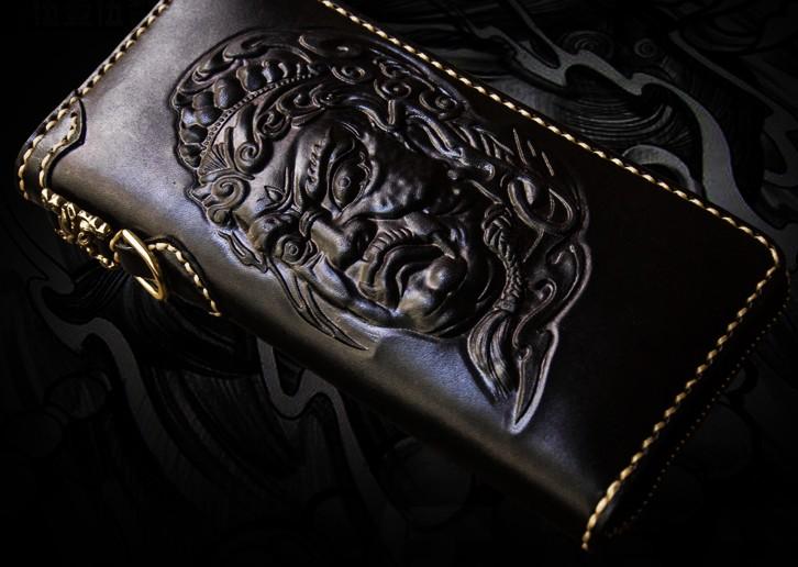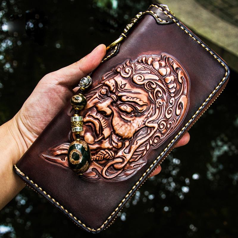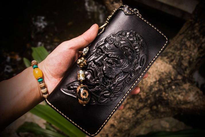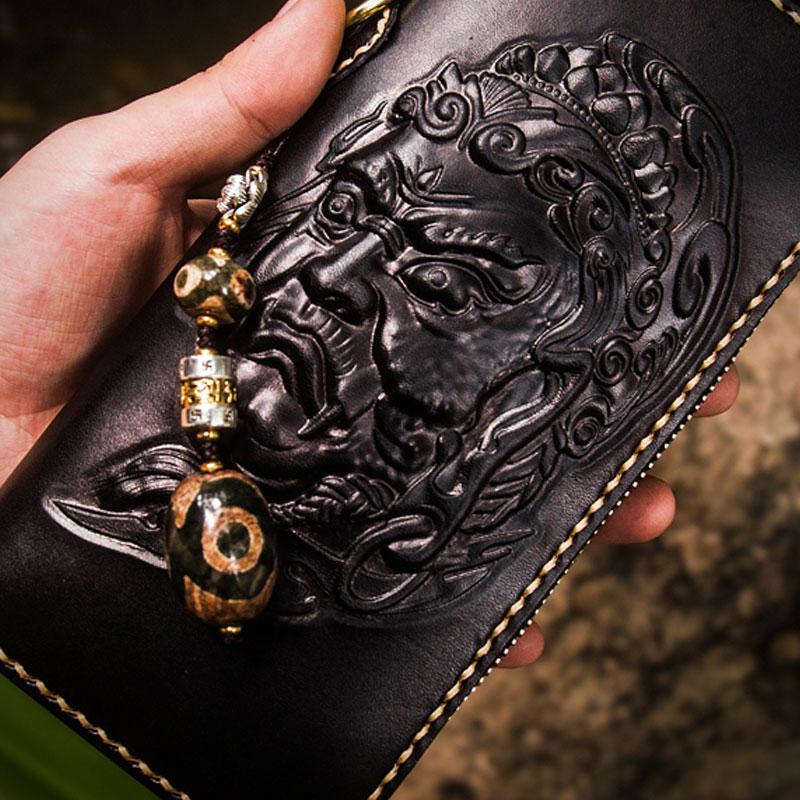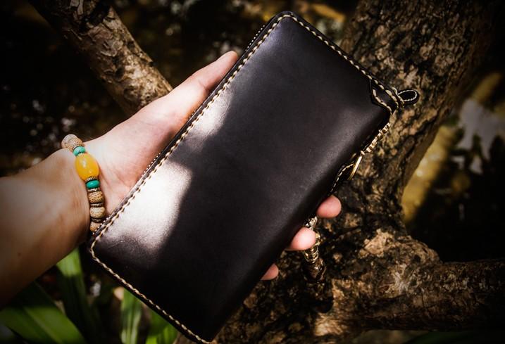 Design: Handmade Leather Acalanatha Mens Chain Biker Wallet Cool Leather Wallet Long Clutch Wallets for Men