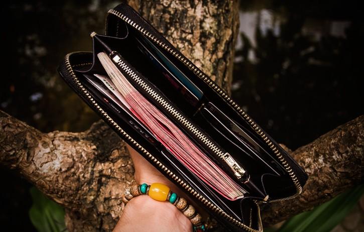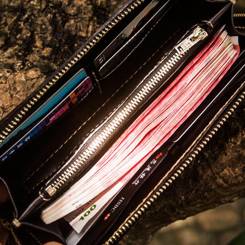 Slots: 2 full size bill slot, 8 card holders, 1 zipper slot