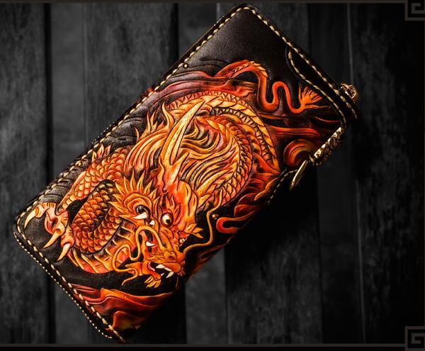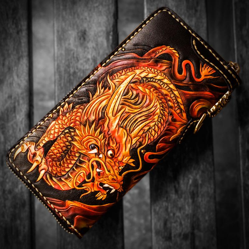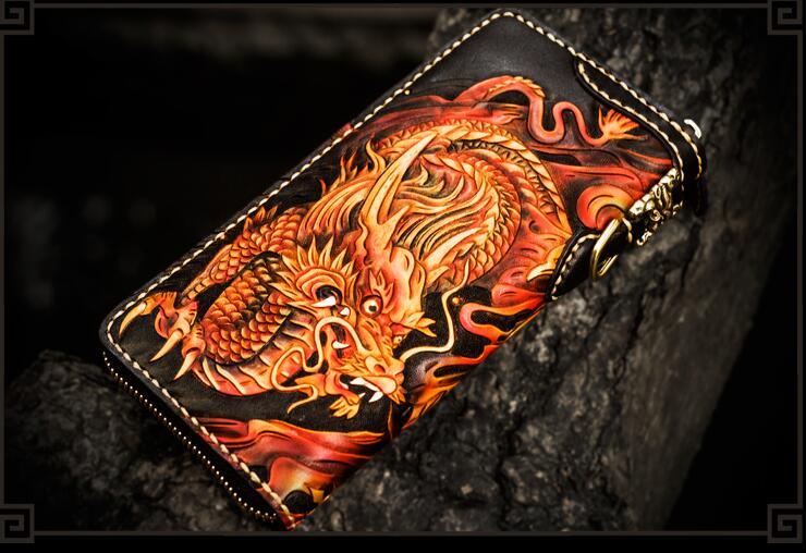 Design: Handmade Leather Acalanatha Mens Chain Biker Wallet Cool Leather Wallet With Chain Wallets for Men
