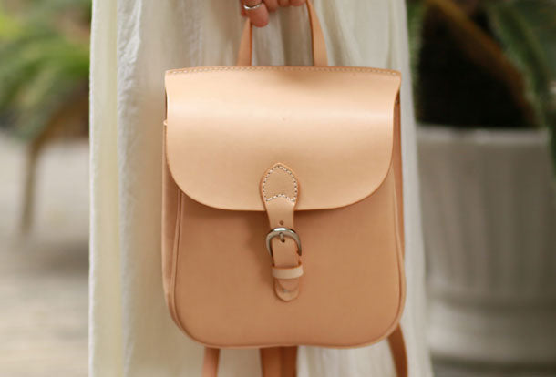 Design: Handmade Leather backpack beige bag purse shoulder bag phone satchel bag