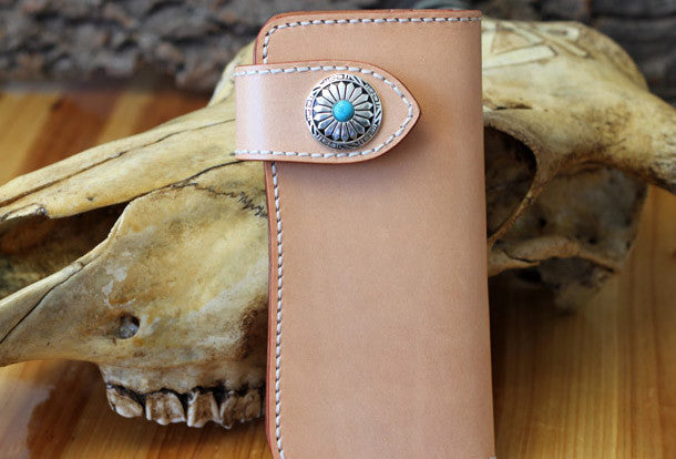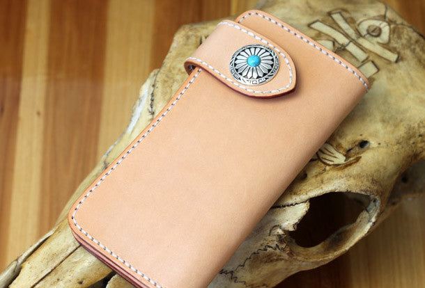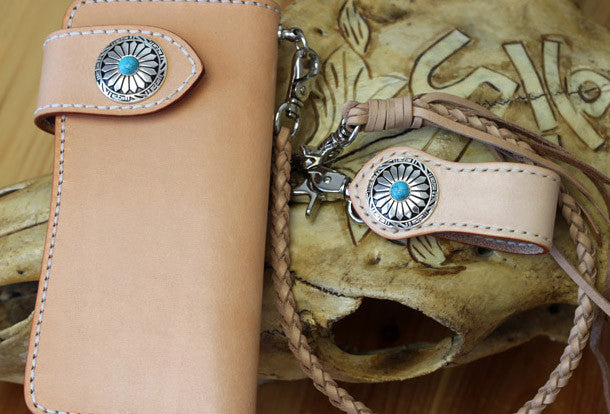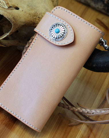 This is handmade beige?natural Italian Vegetable Tanned leather long biker chain wallet purse clutch for men.The wallet is bifold,color is beige?.There are 3?full size bill slots/holder