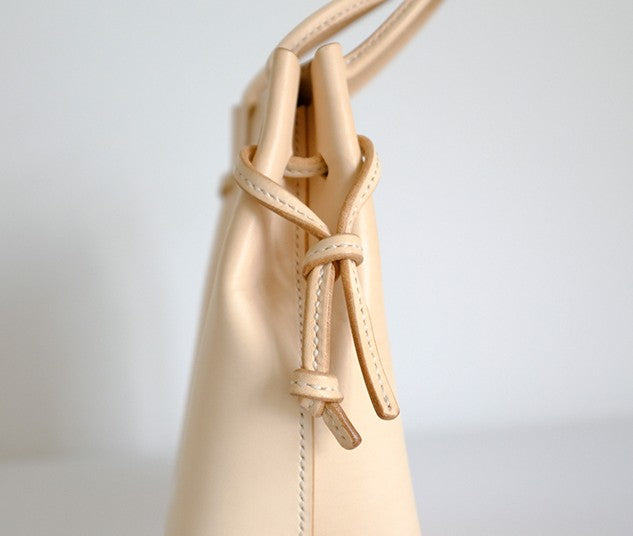 Handmade Leather Beige Womens Handbag Bucket Purse Barrel Bag for Women