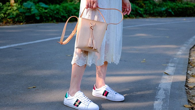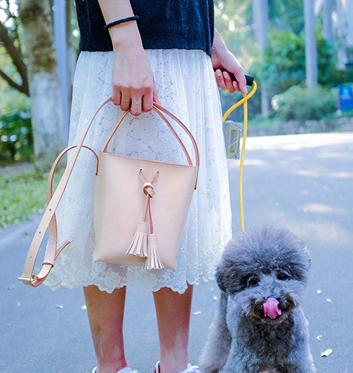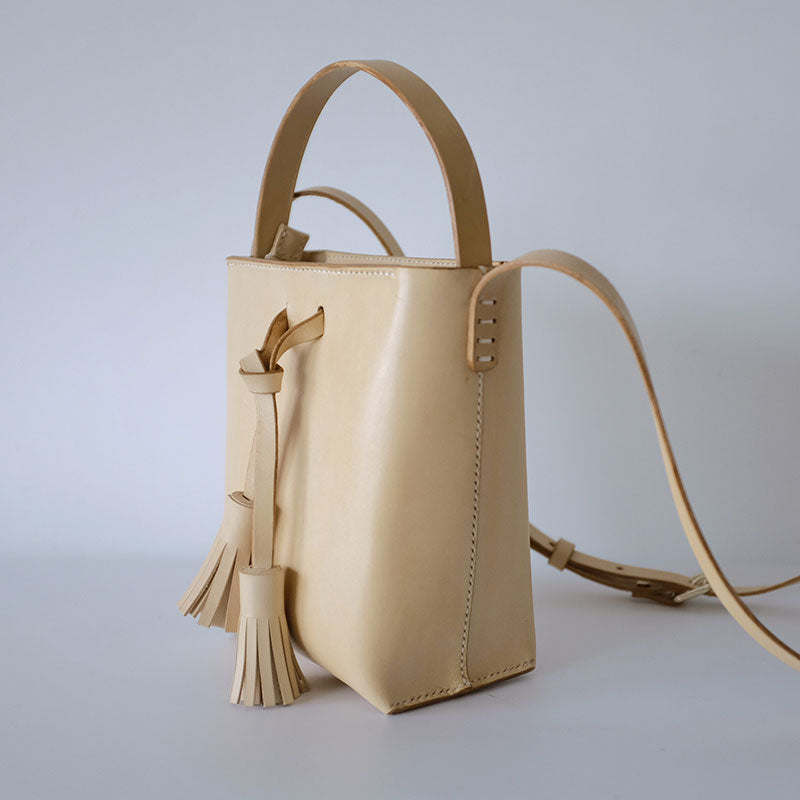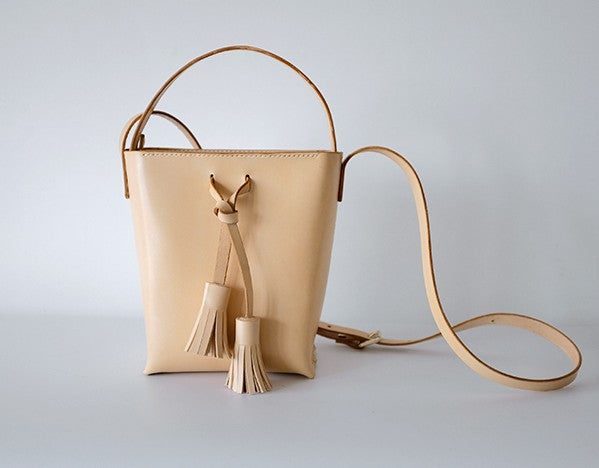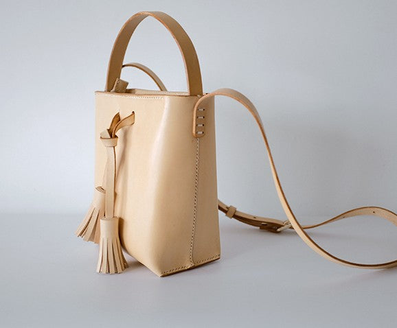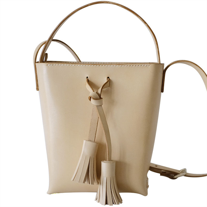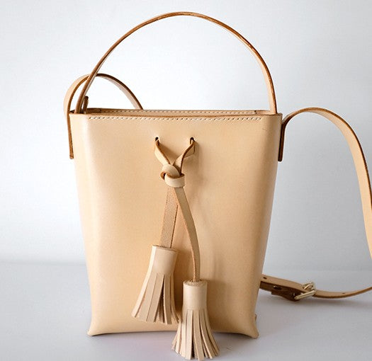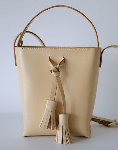 Style: Handmade Leather Beige Womens Bucket Purse Barrel Shoulder Bag for Women