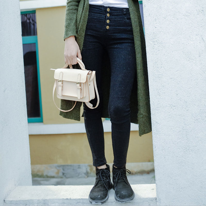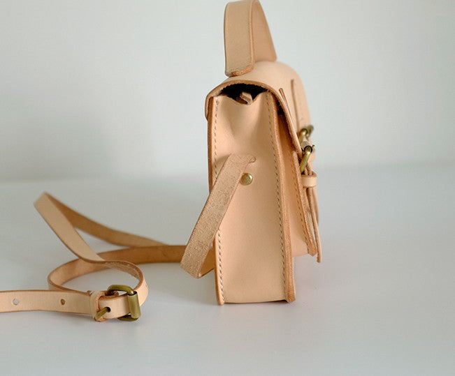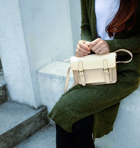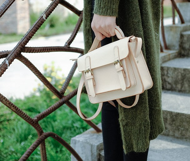 Handmade Leather Beige Womens Satchel Purse School Shoulder Bags for Women