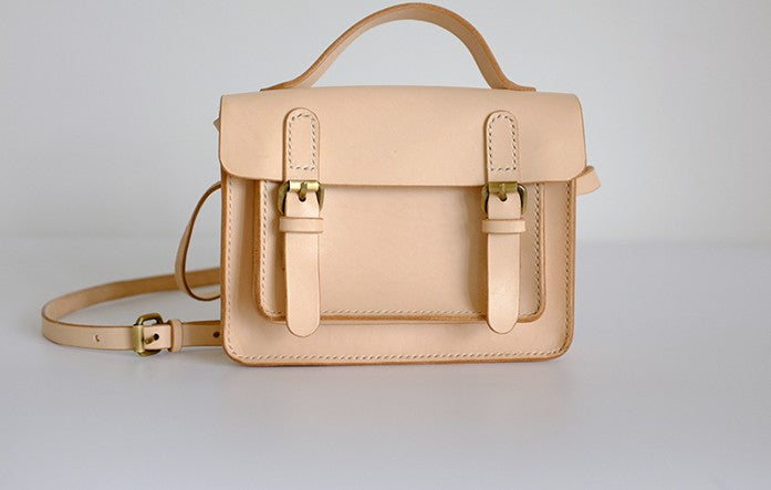 Style: Handmade Leather Beige Womens Satchel Purse School Shoulder Bags for Women