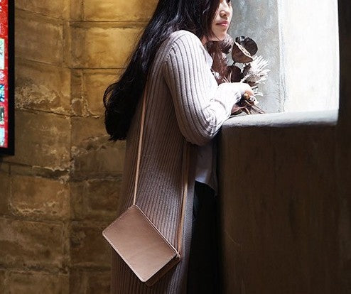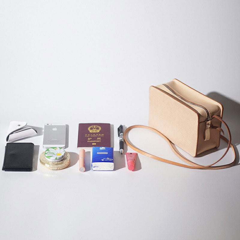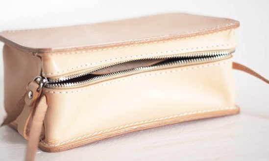 Style: Handmade Leather Beige Womens Small Box Shoulder Purse Crossbody Bag for Women