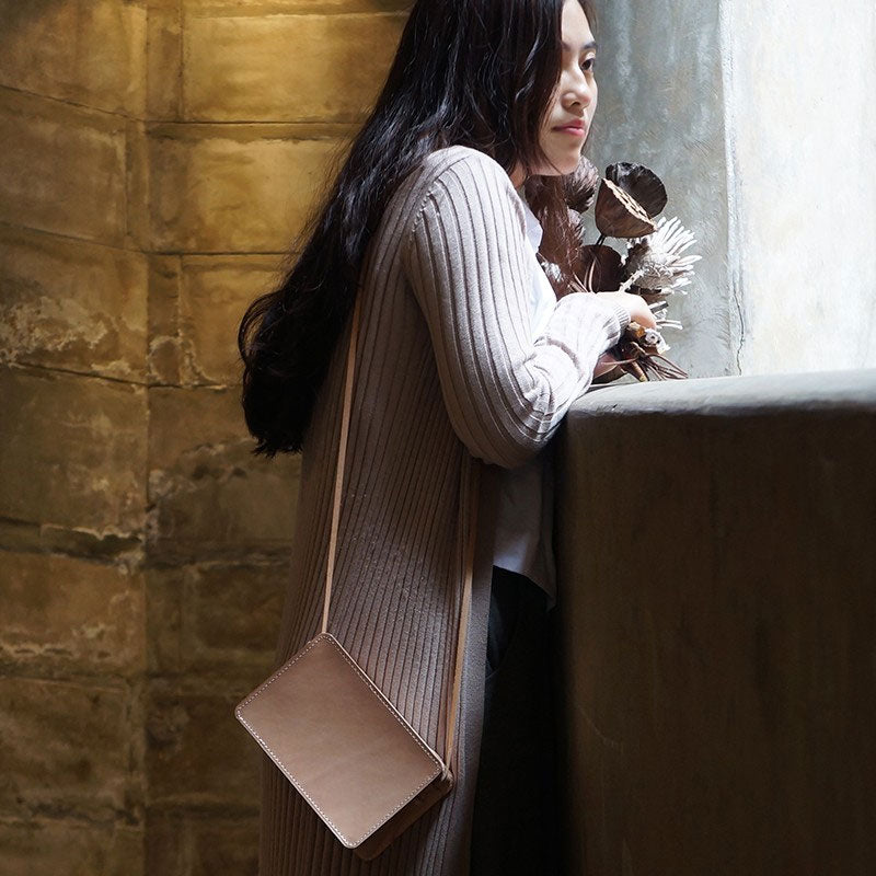 Design: Handmade Leather Beige Womens Small Box Shoulder Purse Crossbody Bag for Women
