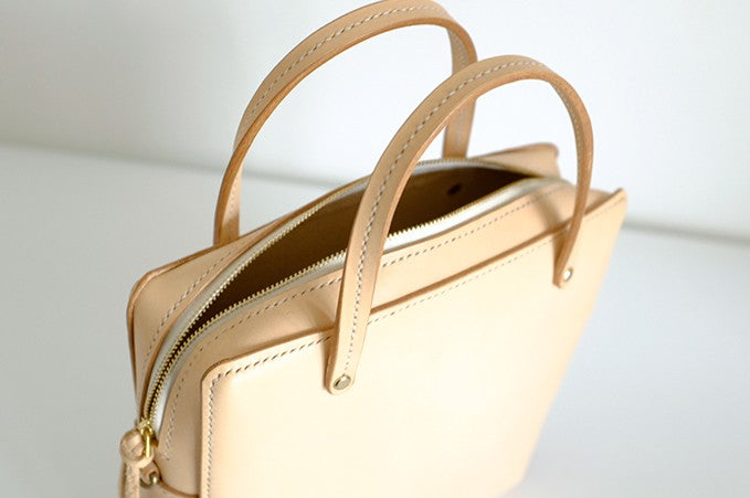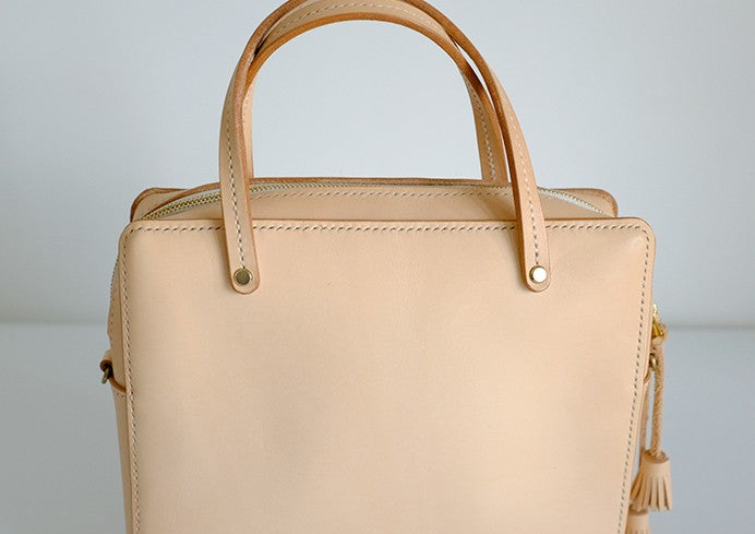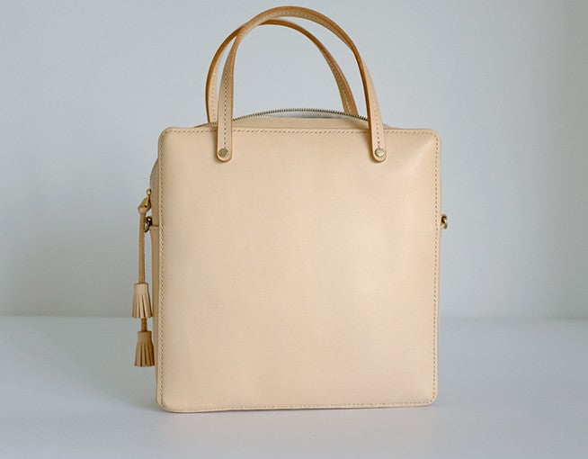Style: Handmade Leather Beige Womens Square Box Handbag Shoulder Bag Purse for Women
