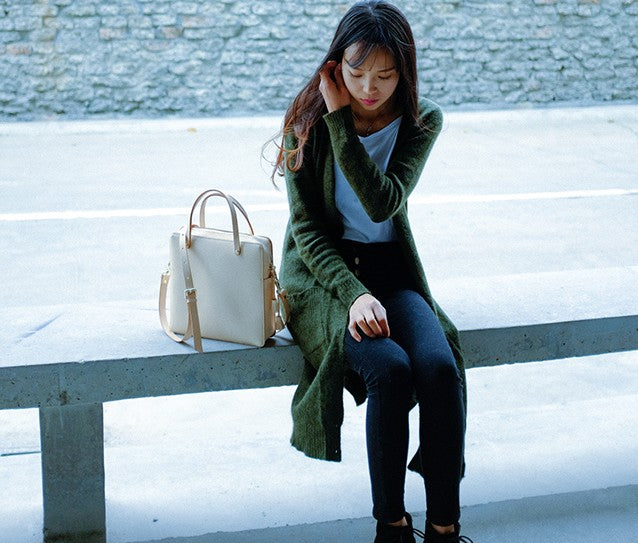 Design: Handmade Leather Beige Womens Square Box Handbag Shoulder Bag Purse for Women