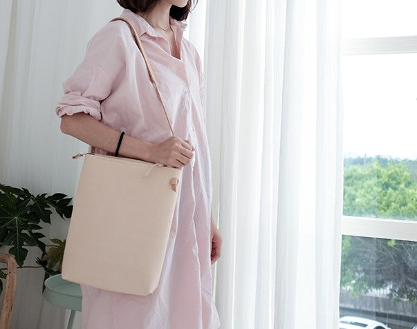 Design: Handmade Leather Beige Womens Tote Crossbody Purse Tote Shoulder Bag for Women