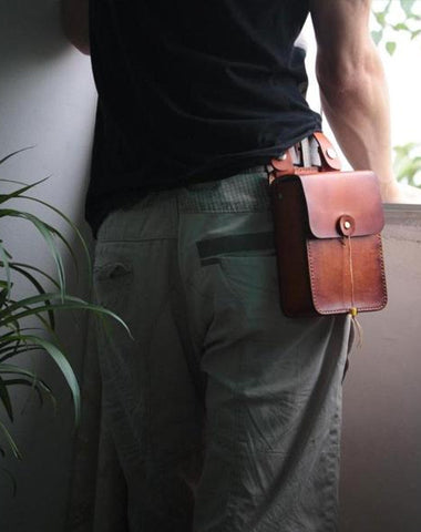 Style: Handmade Leather Belt Pouch Mens Waist Bag CIGARETTE Pouch for Men