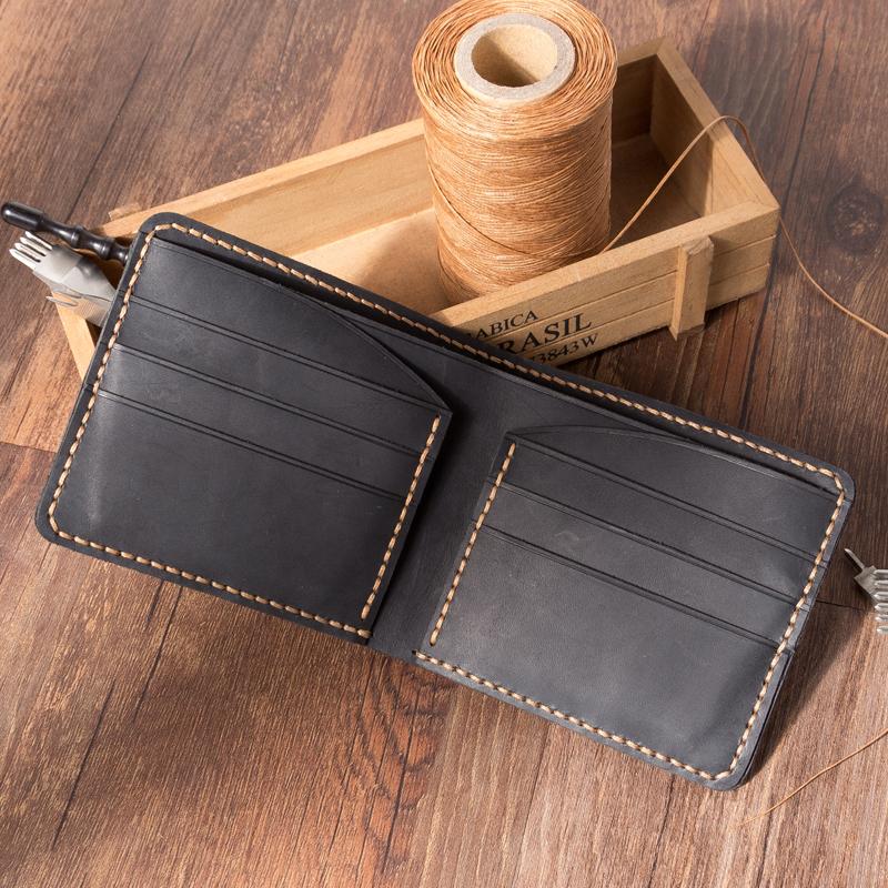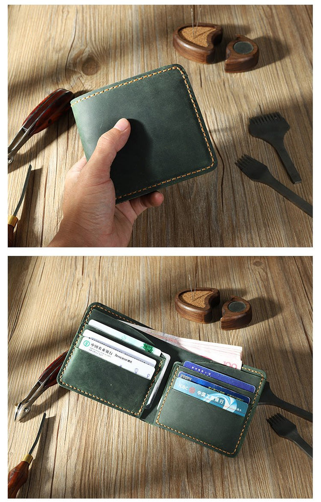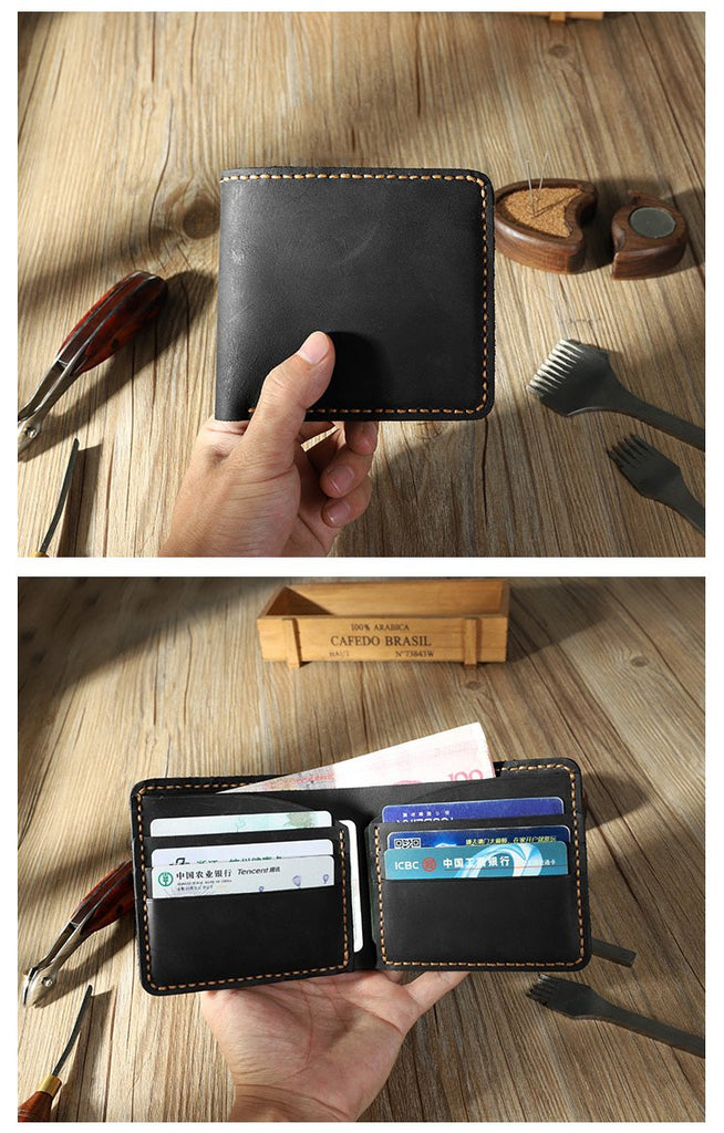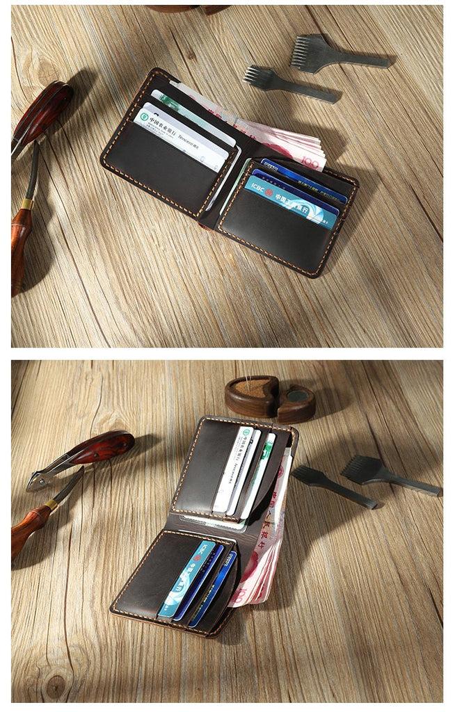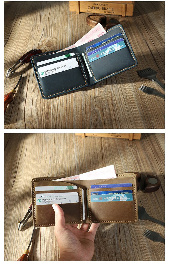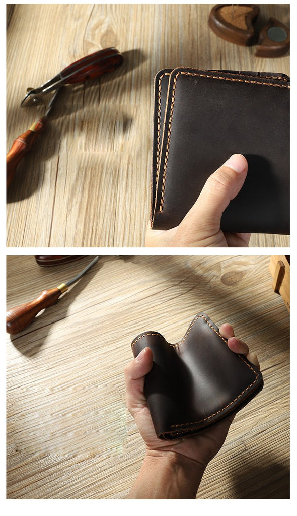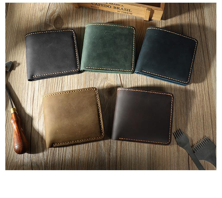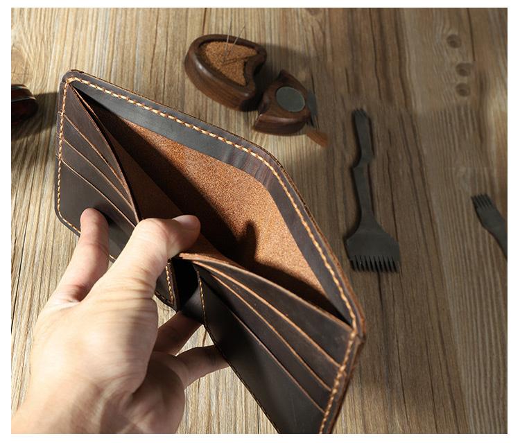 Design: Handmade Coffee Leather Bifold Billfold Wallets Personalized Mens Bifold Wallet for Men