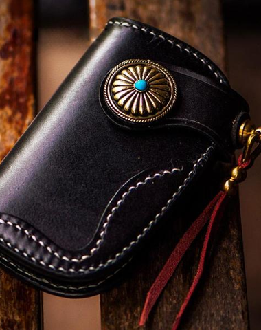 Style: Handmade Leather Tooled Mens Cool Car Key Wallet Coin Wallet Pouch Car KeyChain for Men