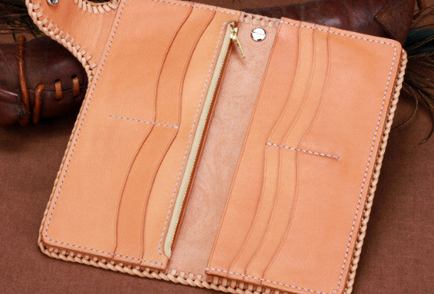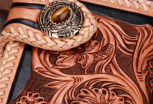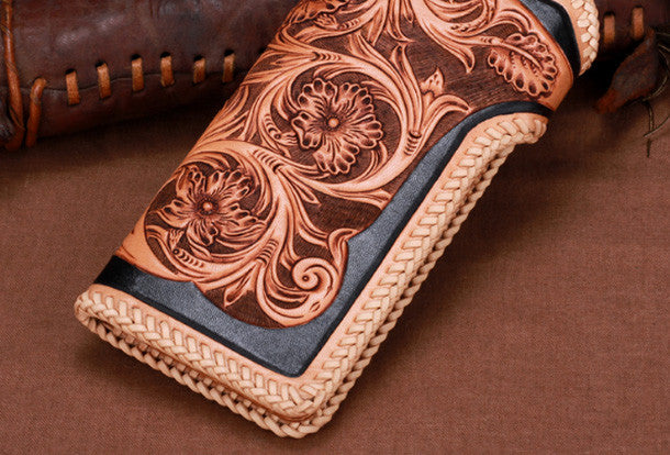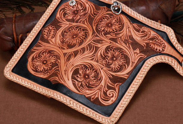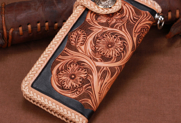 Design: Beige?Carved?lotus Biker Leather Wallet