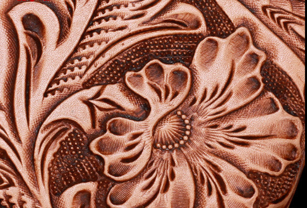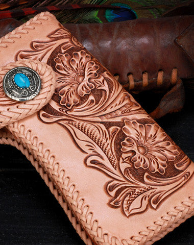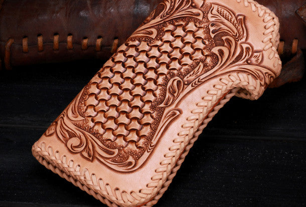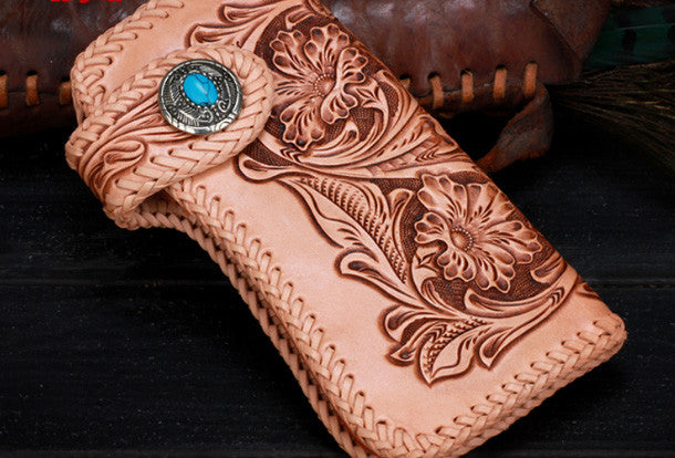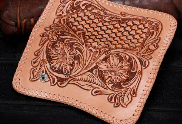 Design: Beige?Carved?lotus Biker Leather Wallet