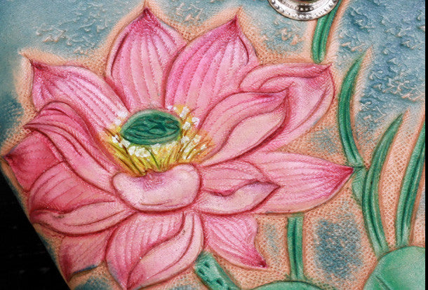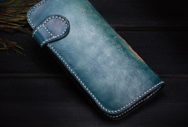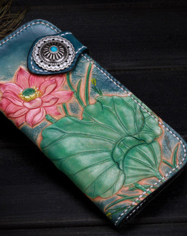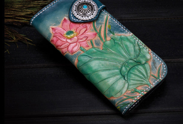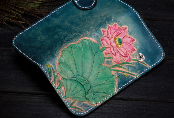 Design: Blue Carved?lotus Biker Leather Wallet